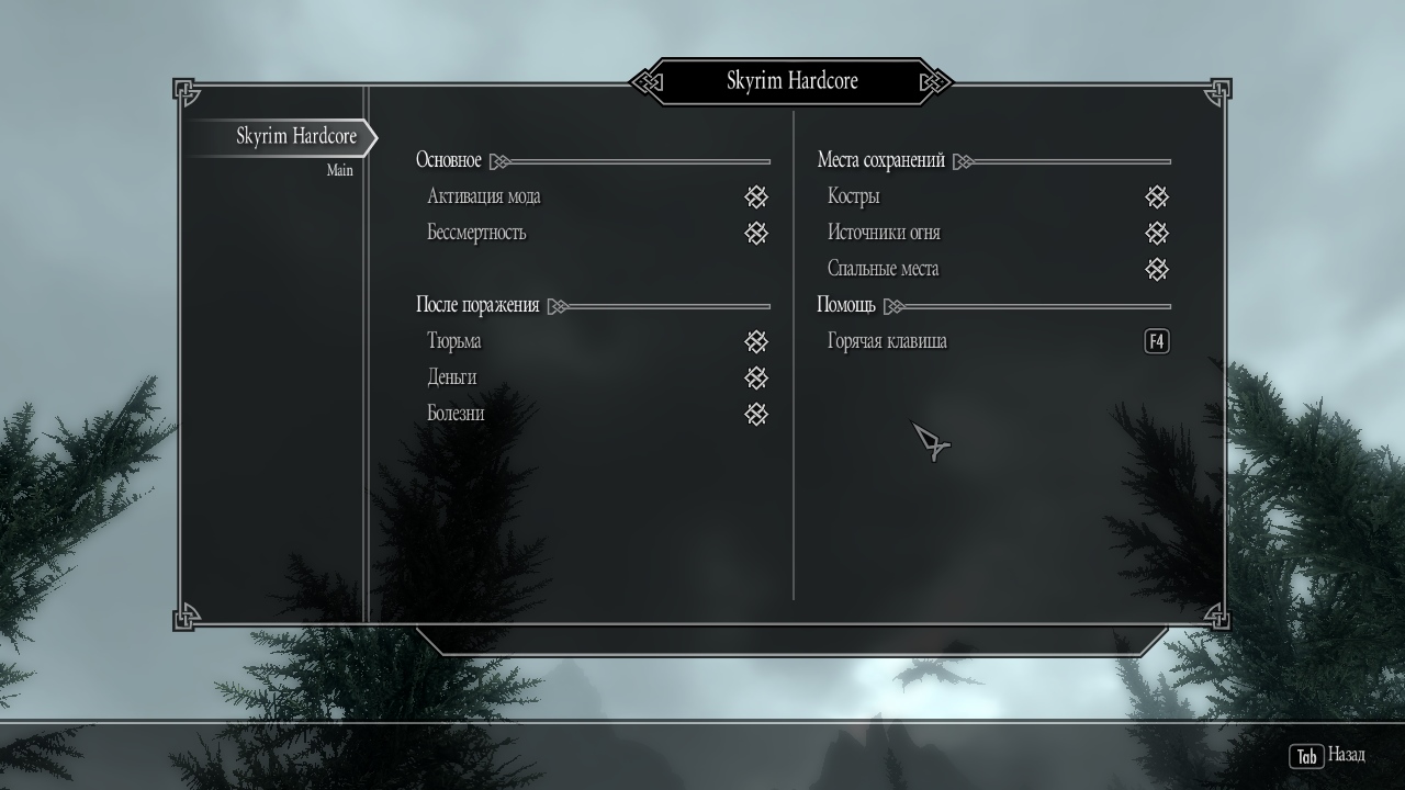 Чтобы облегчить жизнь с этим модом, автор ввёл возможность возвращения к последнему чекпойнту вручную - с помощью горячей клавиши. Такое возвращение обойдётся вам в 25 септимов. По умолчанию этой клавишей является F4, а переназначается она вообще весело - просто переназначив её в МКМ, вам придётся нажать сперва старую (F4) (которая переместит вас в закоулок Рифтена - первоначальное положение чекпойнта, не пугайтесь), а затем новоназначенную клавишу, которая уже переместит вас туда, где вы были, и жизнь продолжится своим чередом, снимется с вас за это аж 50 септимов.