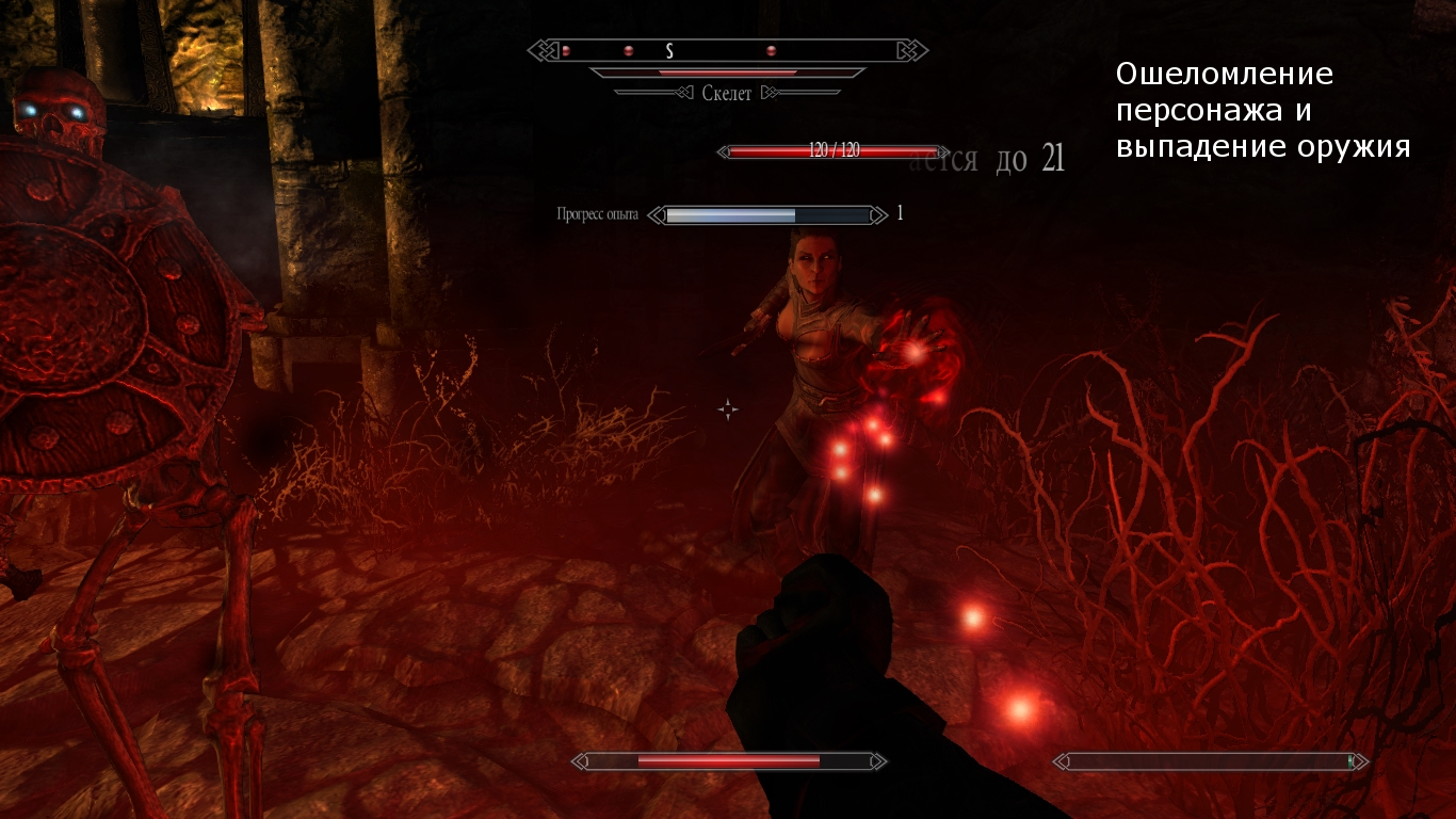 Кроме этого, есть ещё пара особенностей, которые также могут быть настроены в МКМ: при нулевом запасе сил персонаж игрока может неудачно выполнить атаку, в связи с чем последует ошеломление - включаемо/отключаемо. Также есть некоторый шанс выронить оружие высокого уровня при усталости - настраиваемо и включаемо/отключаемо.