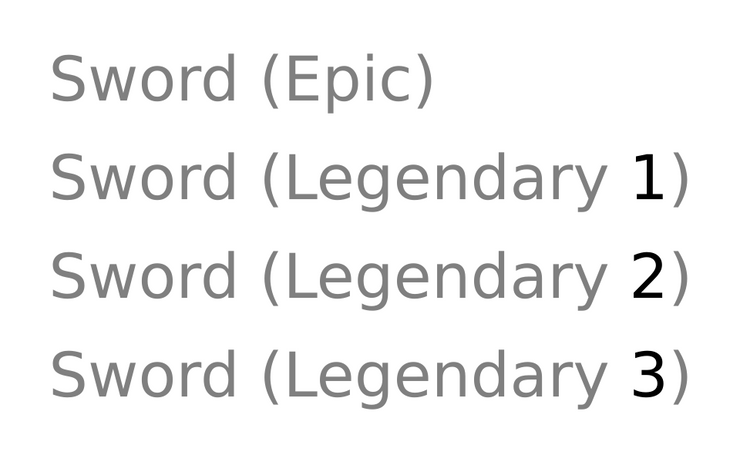 Данный SKSE-плагин позволит вам изменить окончания у оружия, улучшенного на точильном камне, и брони, улучшенной на верстаке. Он создан для работы вместе с модами, которые позволяют улучшать предметы до уровней выше легендарного. Раньше окончания у всех таких предметов были одинаковы ("Легендарн.") и вы могли иметь несколько одинаковых мечей с разным уровнем улучшения, но одинаковой подписью. Данный мод настроен мной так, что начиная с легендарного уровня, вы будете знать степень... легендарности улучшаемого предмета. Теперь предметы будут подписаны так: