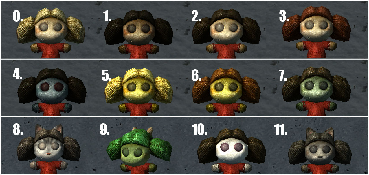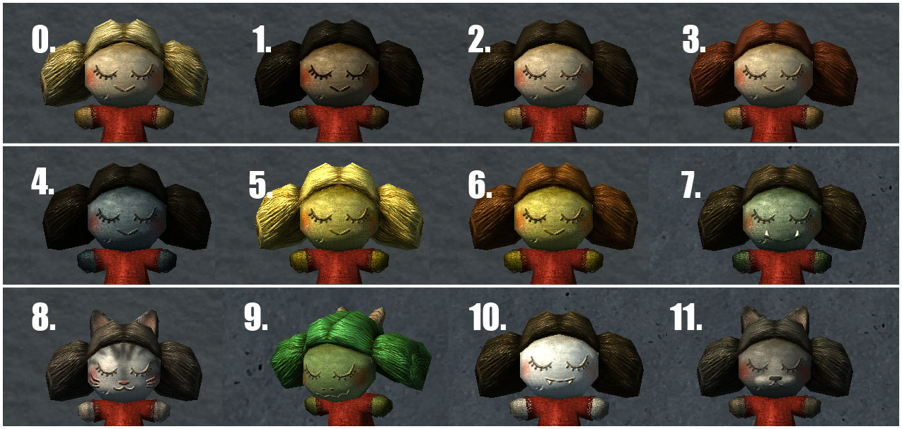 * Все эти куклы, кроме странной куклы, являются просто декоративными предметами под категорией «Разное» в инвентаре, и будут просто продаваться случайно в некоторых магазинах в Скайриме.