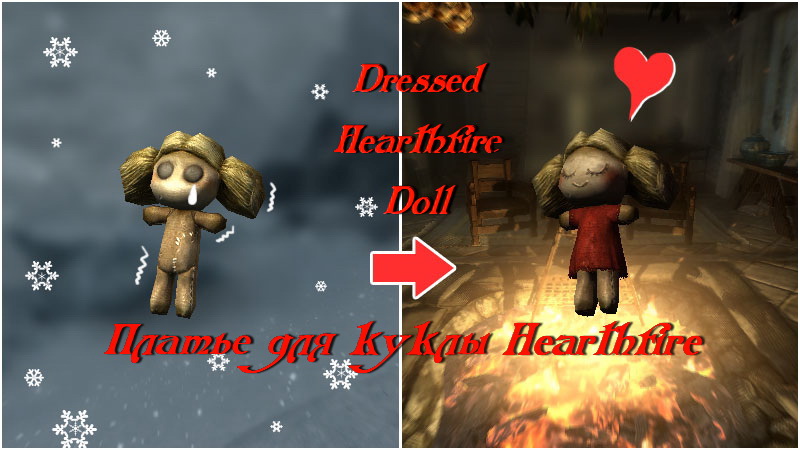 * Мод добавляет в игру Skyrim LE - платье и новые текстуры лица для куклы "Hearthfire"