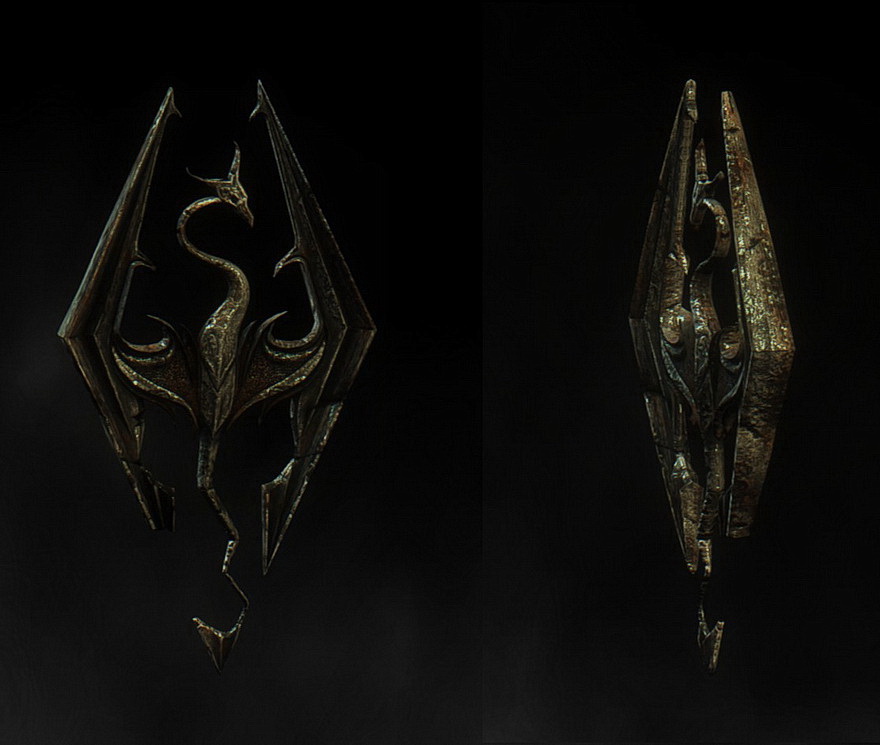 * Мод добавляет в игру Skyrim LE - Потрясающий золотой ретекстур эмблемы главного меню в 2к.