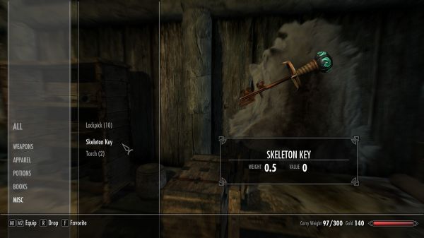 Этот мод делает так чтобы Скелетный Ключ вел себя как ключ. Когда он в вашем инвентаре и вы активируете любую дверь или контейнер, который не требует уникального ключа, то он будет открывать их мгновенно. Если замок требует уникальный ключ появится сообщение с запросом к игроку, чтобы подтвердить использование ключа как отмычки. Гениально!