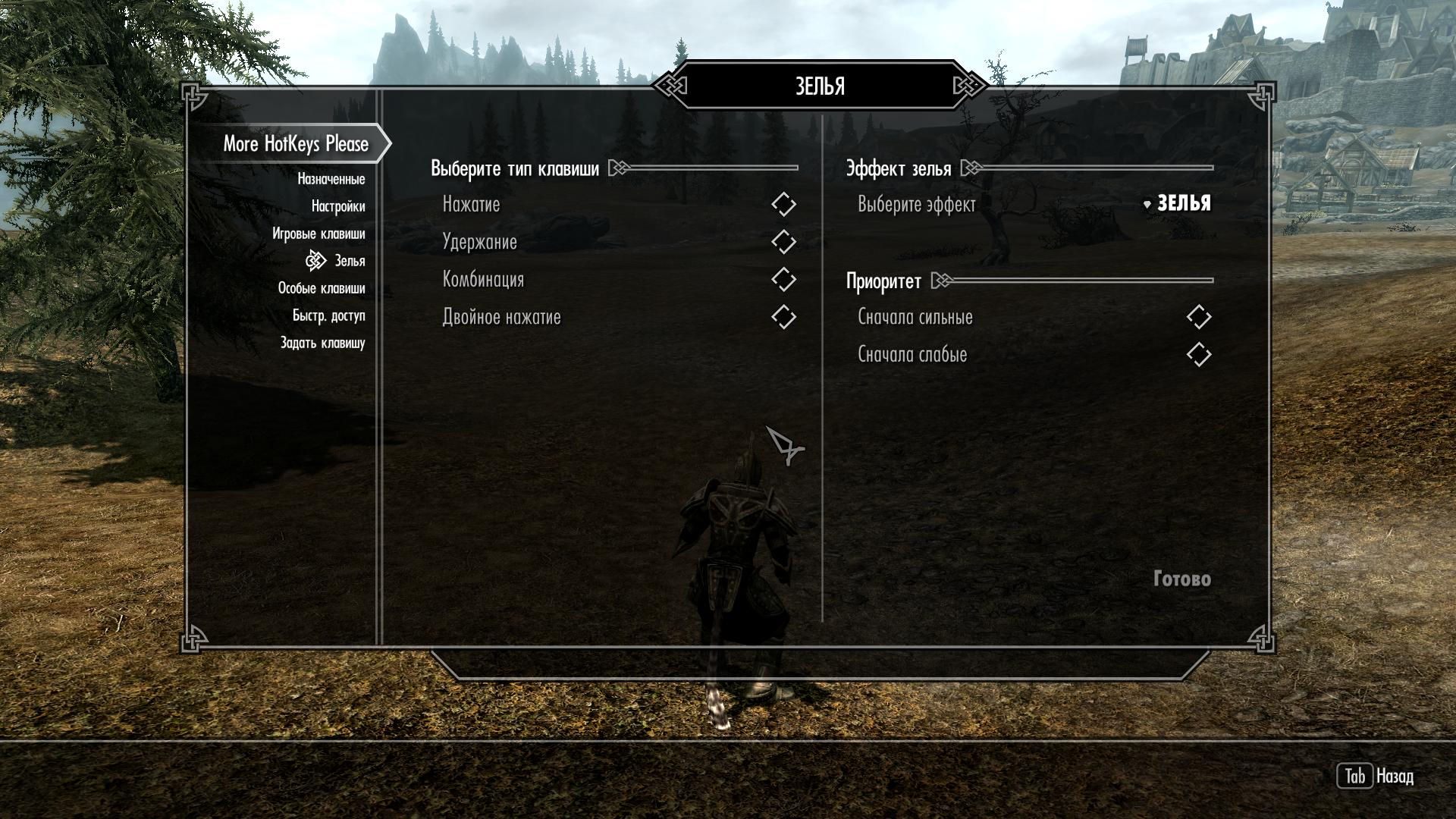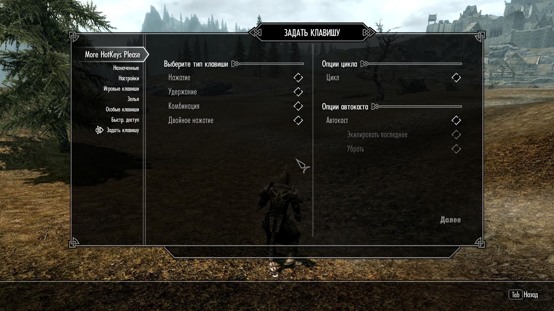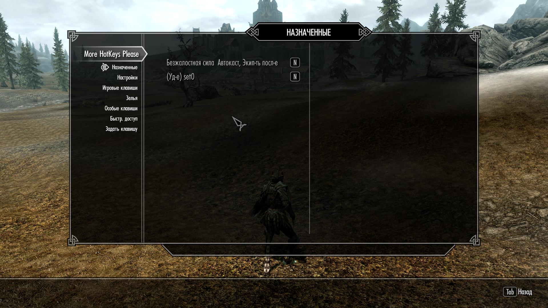 1 - Пользователям небольших мониторов с соотношением сторон 4:3 НАСТОЯТЕЛЬНО рекомендуется использовать МСМ-Меню, поскольку даже оригинальный непереведенный мод под такой монитор не адаптирован и, если вы попытаетесь задать хоткеи через добавленное заклинание, всплывающие сообщения будут уходить далеко за границы экрана.