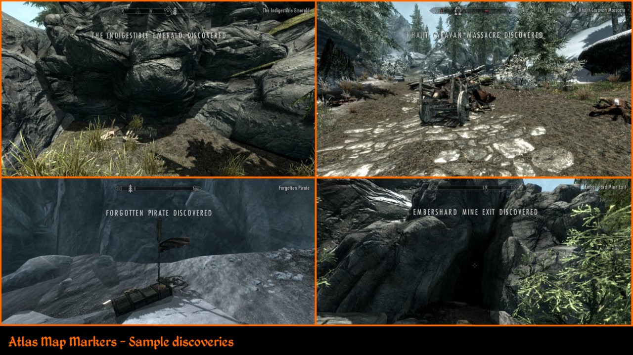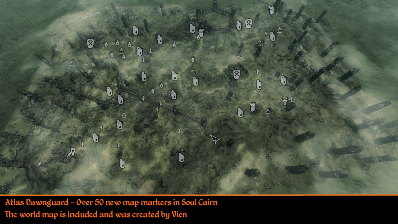 В Скайриме есть множество интереснейших мест, до которых тяжело добраться, а потому они могут быть с легкостью пропущены. Данный мод добавляет новые отметки на карту для более чем 300 второстепенных локаций. Эти локации являются частью оригинального Скайрима, а также дополнений Dawnguard, Hearthfire, Dragonborn, иначе говоря, мод не добавляет новых локаций в игру. С этим модом вам станет куда легче отыскивать сокровища, святилища, лагеря, драконьи курганы, логова животных, захоронения, книги навыков и множество других уникальных мест, расположенных во всех уголках Скайрима.