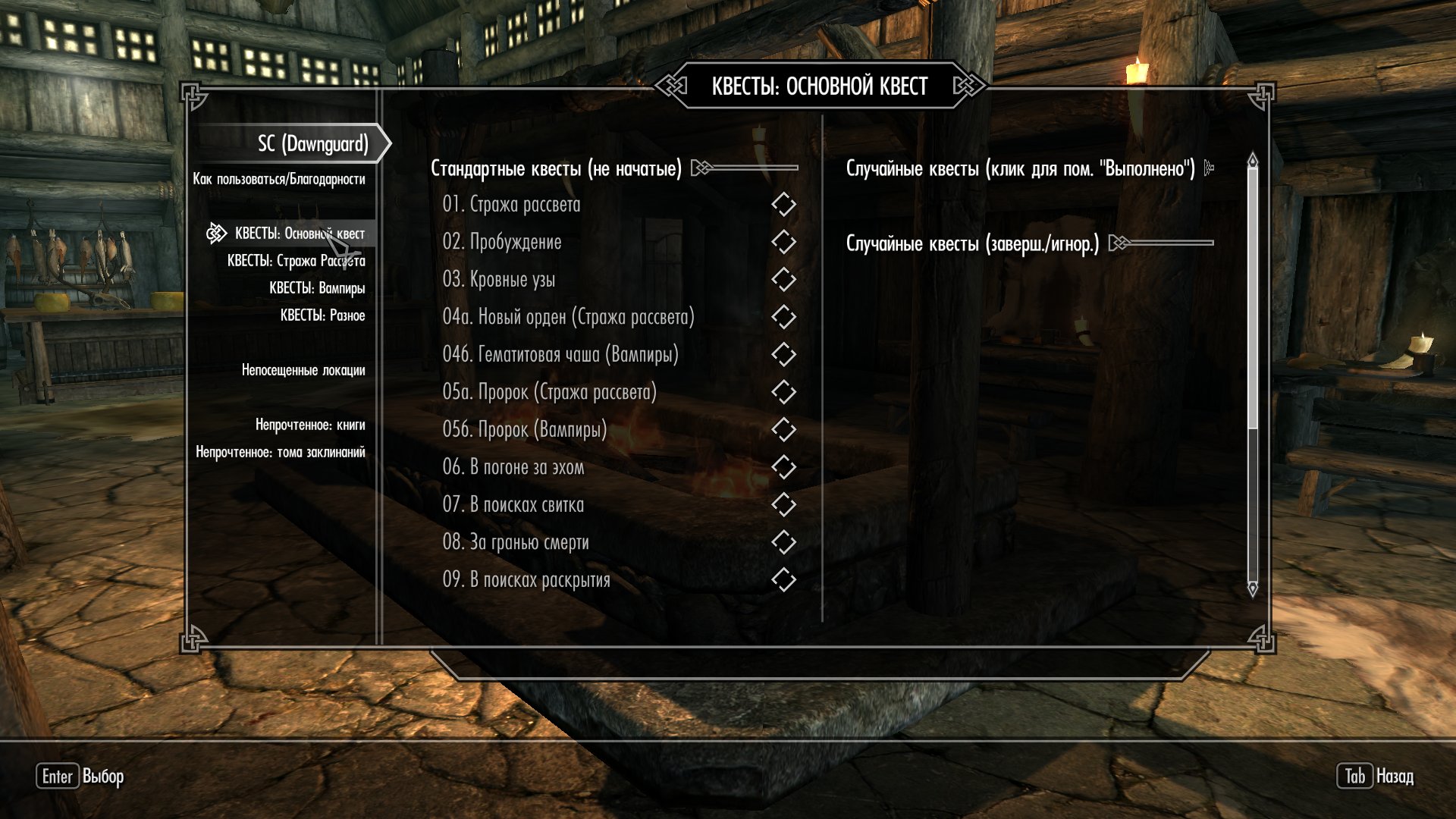 - Случайные квесты (клик по ним пометит их как "Завершенные")