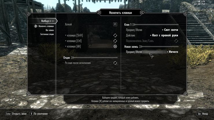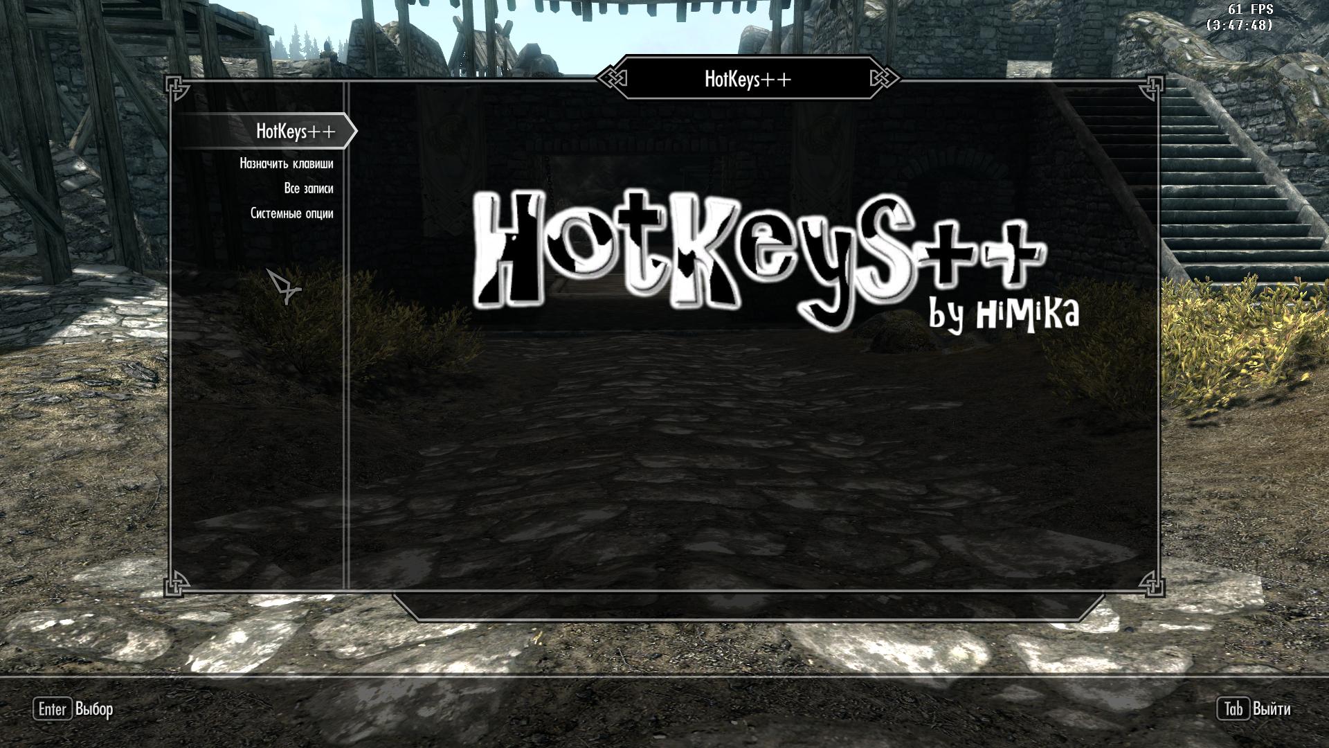 Если вам не хватает стандартных "горячих клавиш" (хоткеев), предоставленных Беседкой, тогда этот мод для вас. Помимо ванильных клавиш "1-8", вы можете задать в качестве хоткея практически любую клавишу, соблюдая два простых условия: