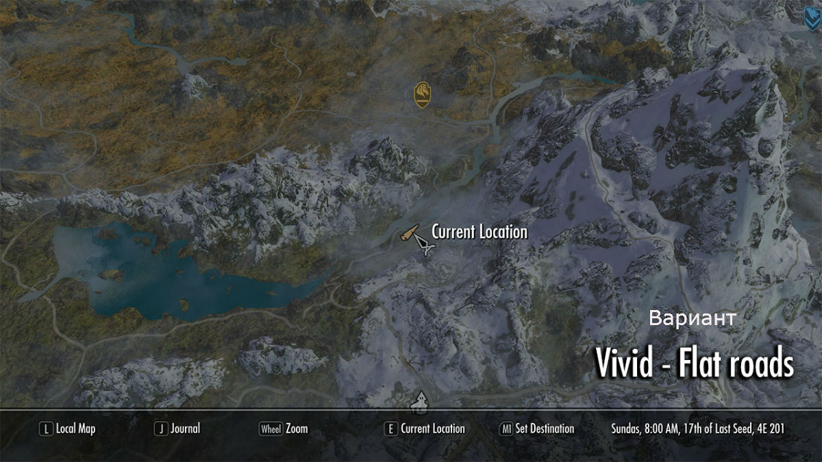 Данный мод заменяет стандартную карту на новую, улучшенную карту с красивыми текстурами и детализированными дорогами. Ниже представлены 3 варианта мода: "Класиическая карта" - стандартная карта с разными вариациями (прошлая версия мода), "Ясная карта" - более живописная, детализованная карта с "осенней" атмосферой и "Бумажная карта" - карта с высоким разрешением и бумажными текстурами. ВАЖНО!!! Вариант карты "Бумажная карта" только для Скайрима, Солстейм в этот вариант не включен.