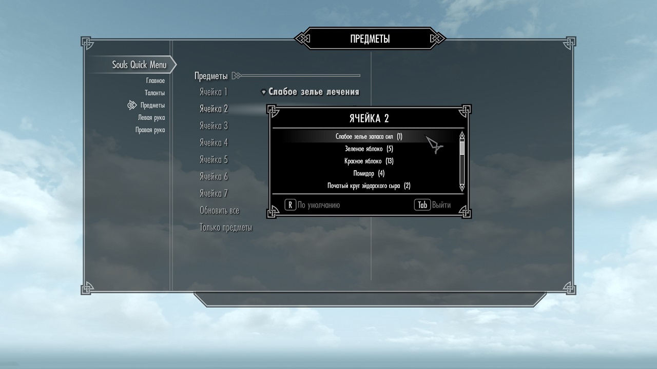 Данная модификация представляет собой стилизованное меню быстрого доступа. Доступно 4 категории, в каждой из которых по 7 вариантов избранных вами предметов или способностей.