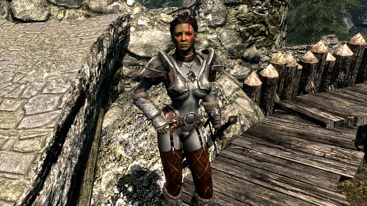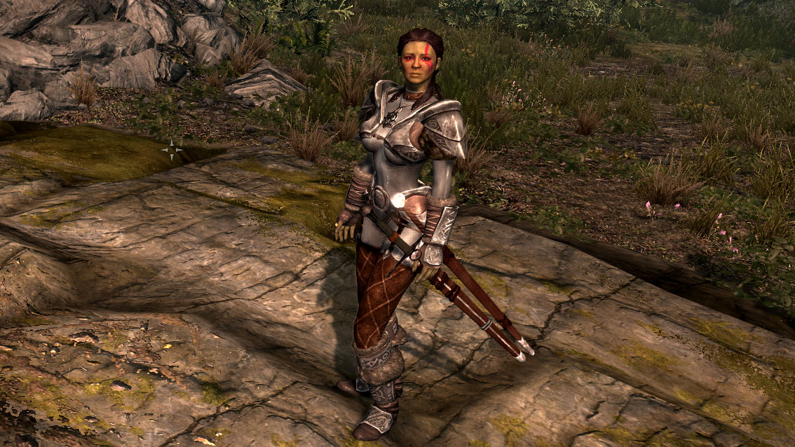 Версия 1.5.1 добавлены меч и броня со скринов (CBBE), подходящий диалог. У Афиары всё с собой, остальные части либо полностью такое же снаряжение можно произвести в кузнице (разрешения