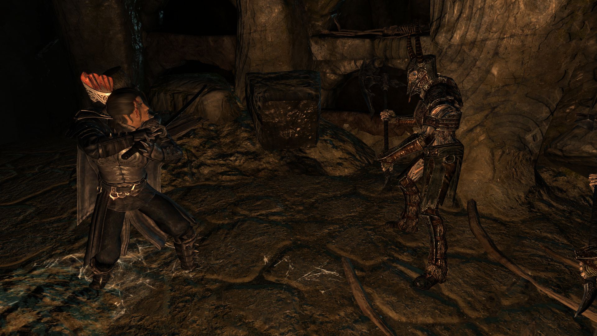 Кат-сцена и бой с Розалиндой сделаны так, что Кайден и игрок в начале боя встанут на свои позиции. Розалинда всегда вызывает двух огненныйх атронахов. Боевая музыка всегда останавливается. (Исправление часто встречающихся ошибок.)
