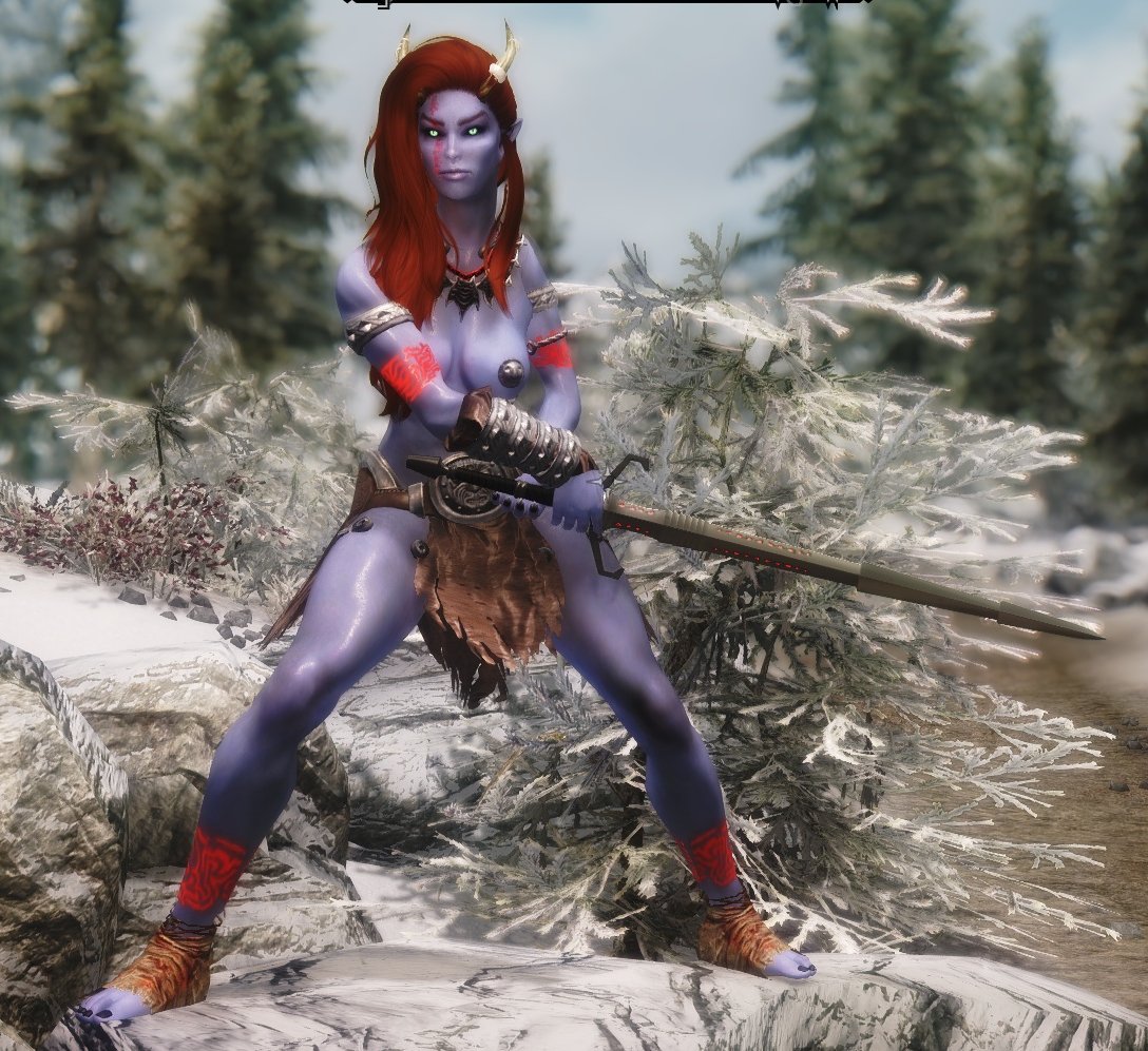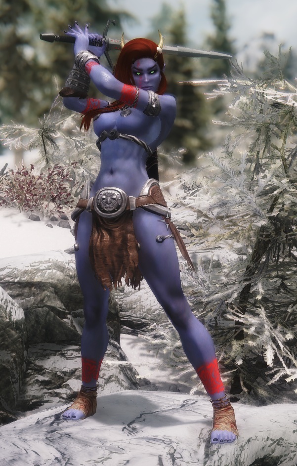 На скриншотах Тай'ра для UNP. В CBBE версии автор удалил все текстуры и сделал простую заливку синим цветом, что на мой взгляд выглядит гораздо хуже. Поэтому рекомендую использовать UNP версию.