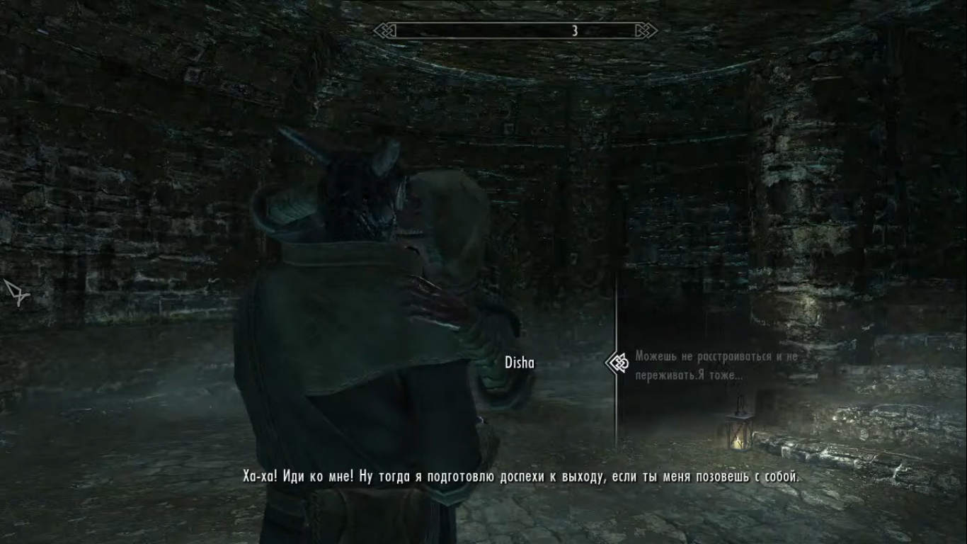 Пара слов о "компаньоне". Класс у него, как у Пенитус Окулатус. Это значит, что сражаться он будет и магией, и мечом. У него вкачаны перки ношения тяжелой брони, использования магии и одноручного меча. А так же добавлено заклинание шуточное, которому диша может вас научить, если вы выстроите отношения..