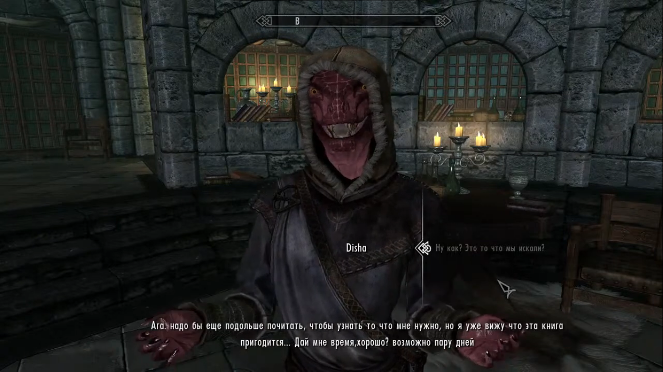 1) Когда вы начнете общаться с Дишей, у вас может не быть реплики приветсвия и знакомства. Диалог начнется с того момента, как будто вы уже познакомились и начинаете общаться. Как это лечится, я не знаю, потому что у меня баг был на одних персонажах и не был на других, при том, что никто из них еще не общался с аргонианкой. Вы можете попробовать презапустить игру (не сохранение) и попробовать включить и отключить плагин, как вторую меру. Хотя баг, конечно, не критичный.