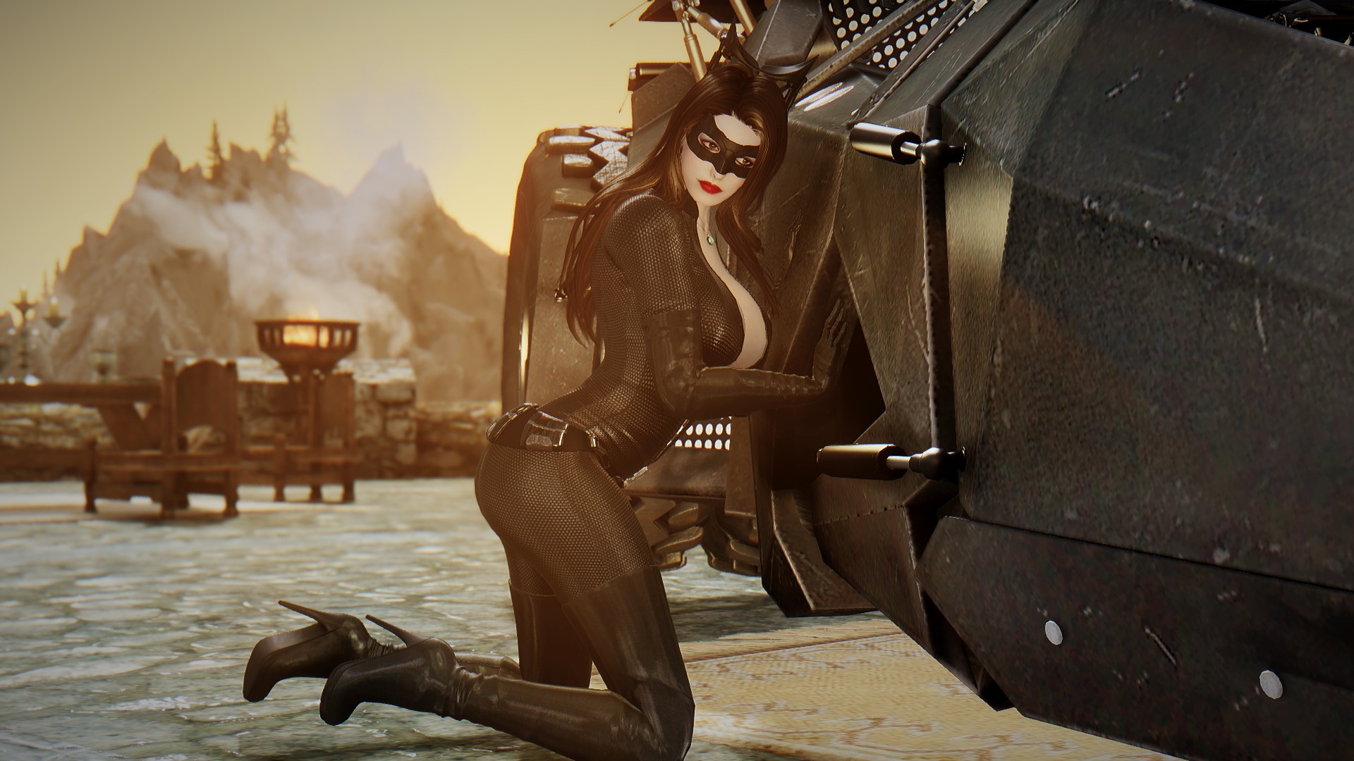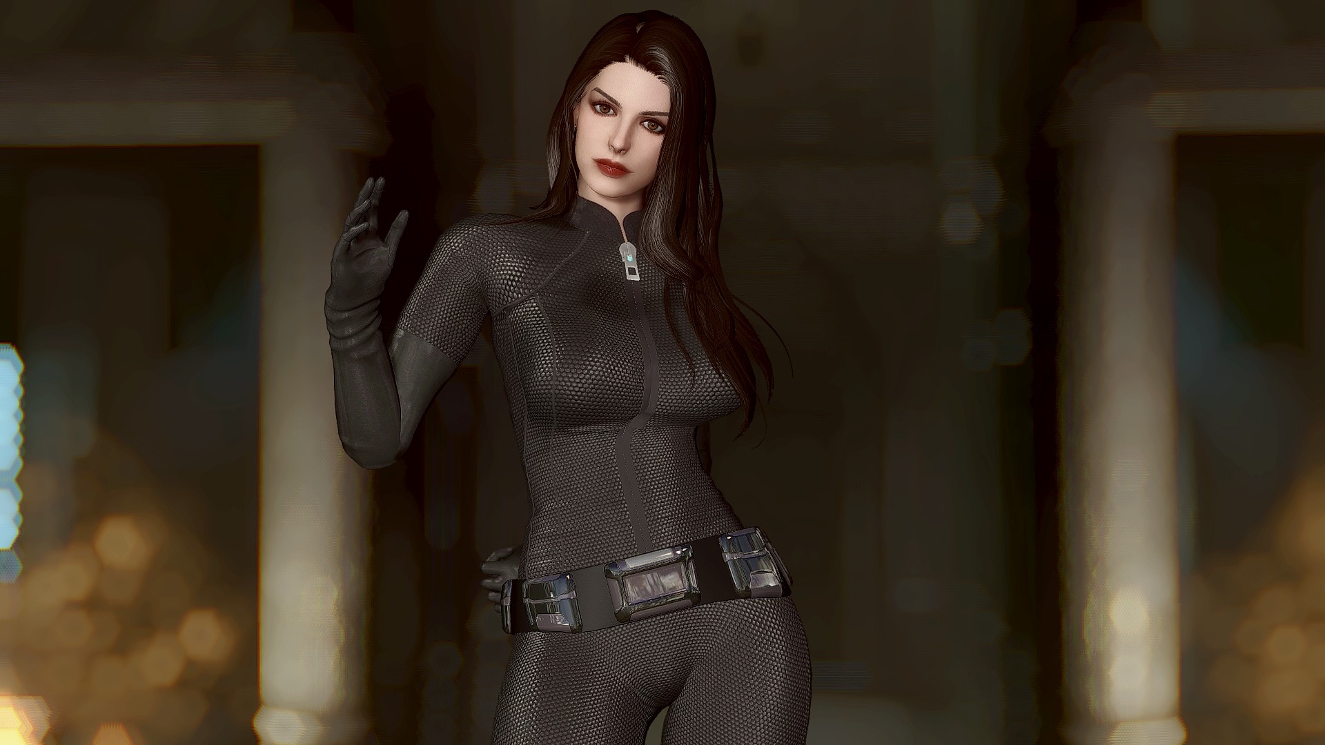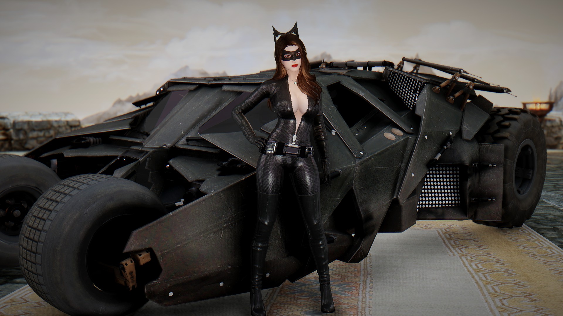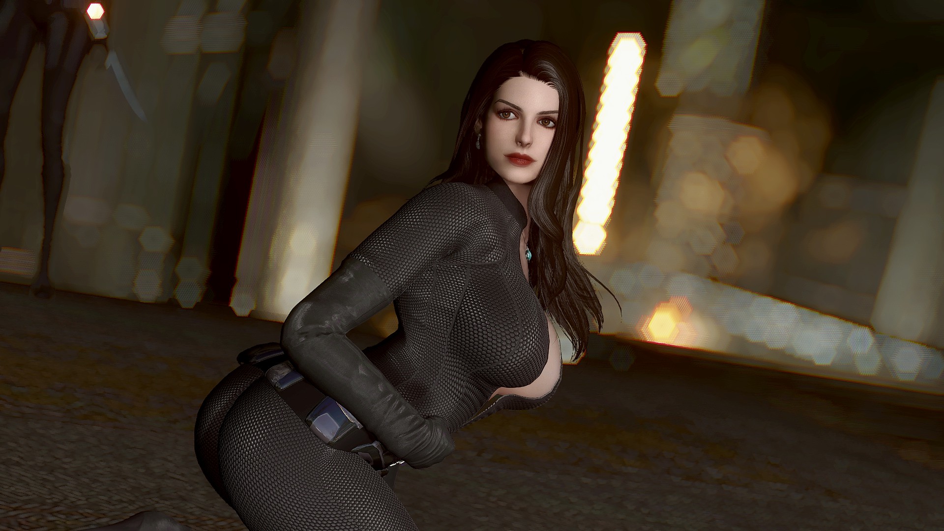 Селина Кайл носит костюм женщины-кошки и вы можете настроить ее наряд через диалог. У нее есть маска и парик smp в инвентаре. Чтобы использовать парик, вам нужно установить патч (опциональный файл smp-pe path).