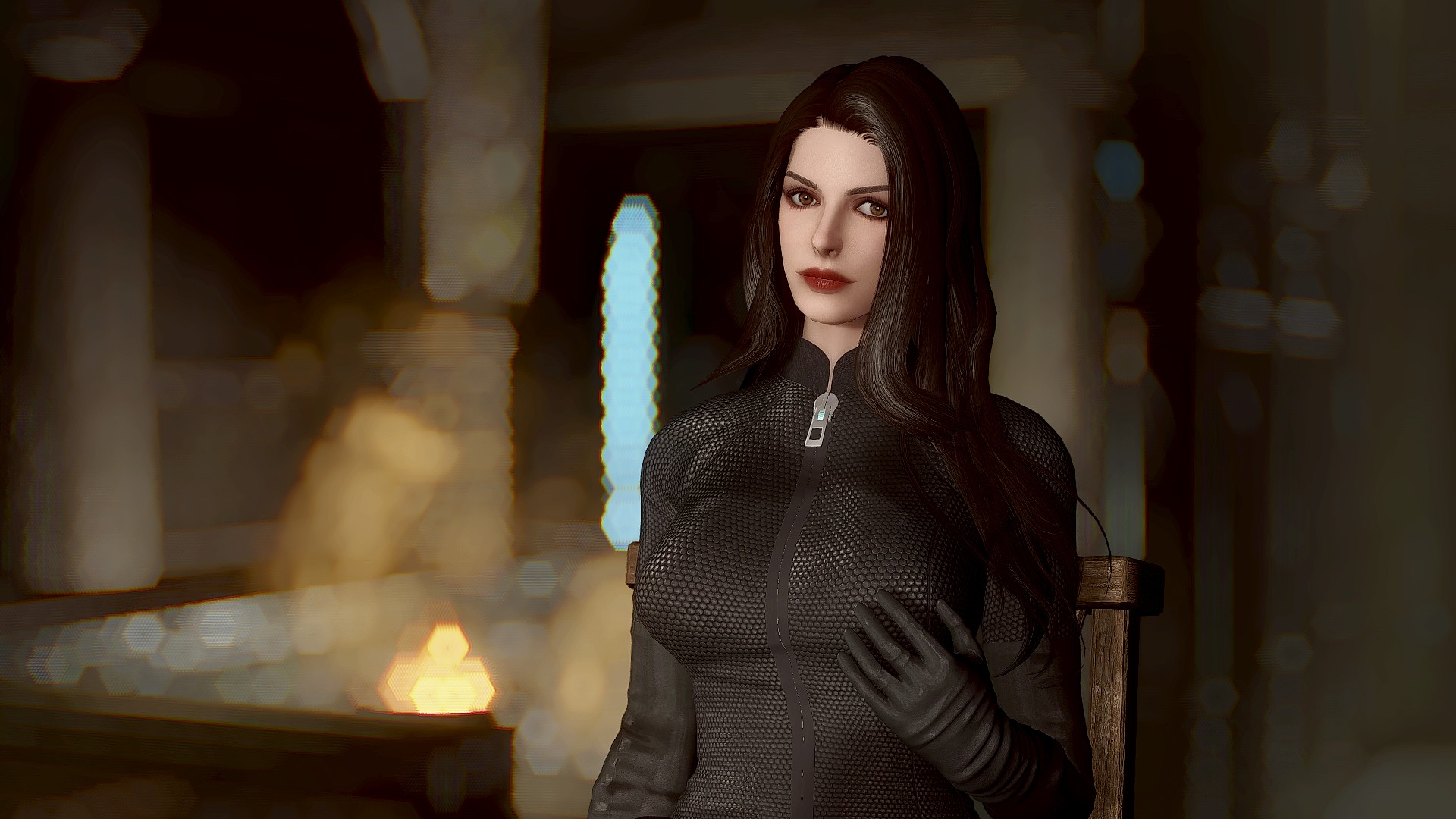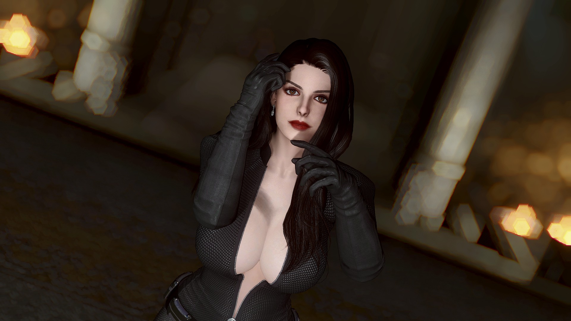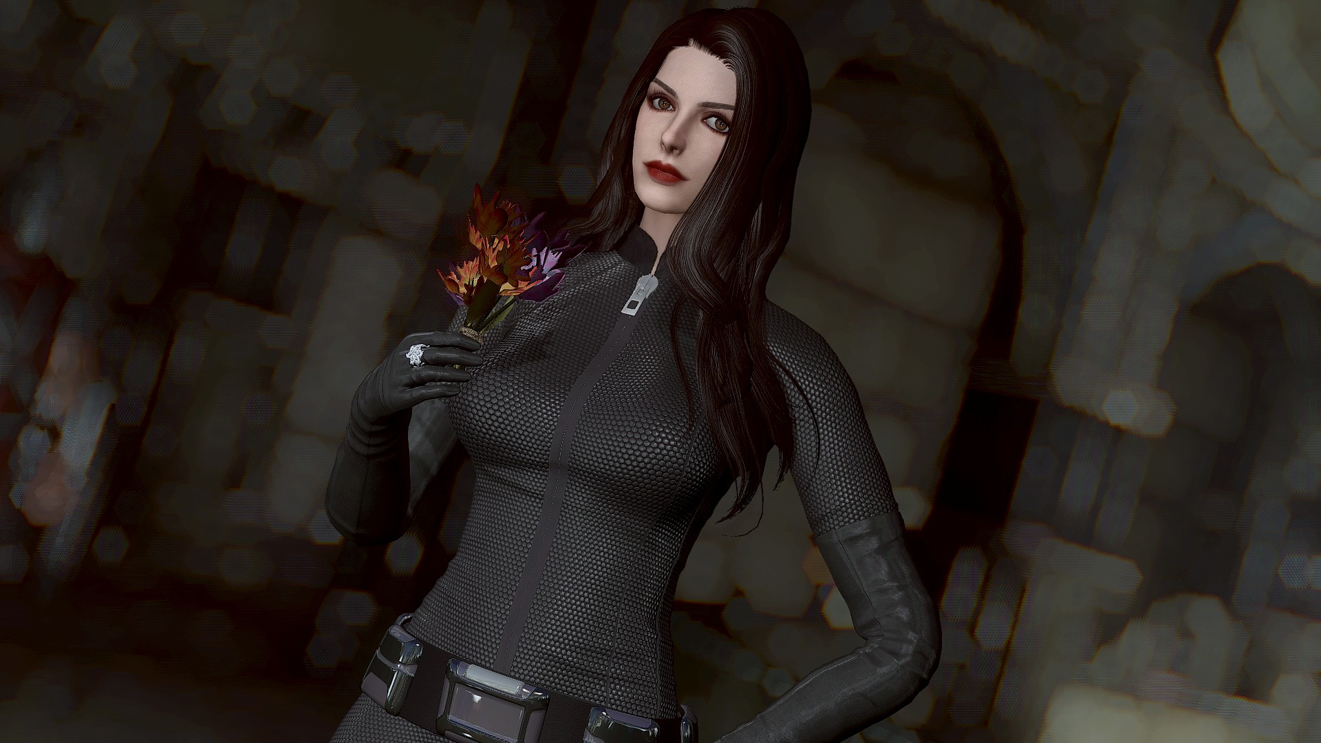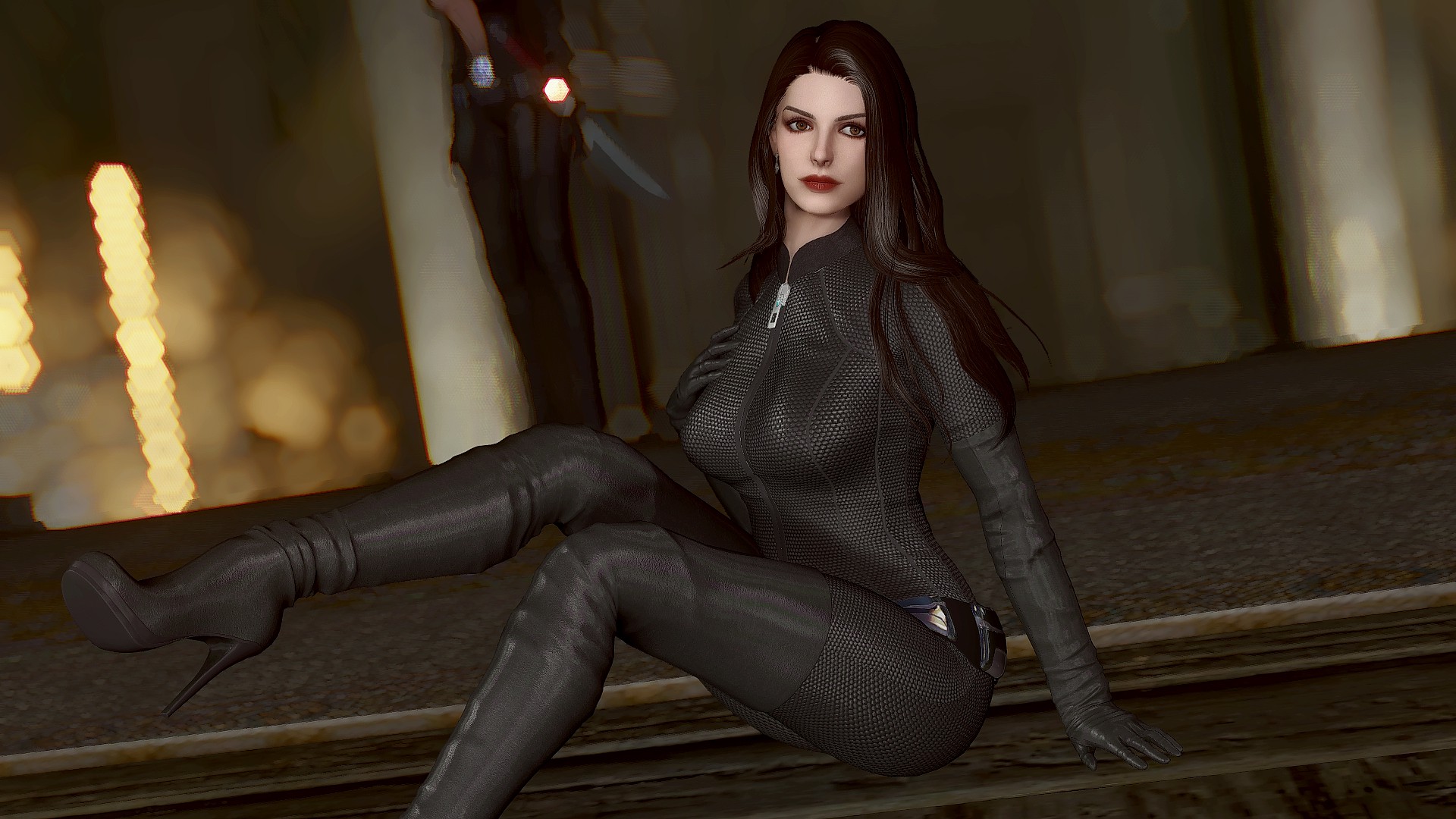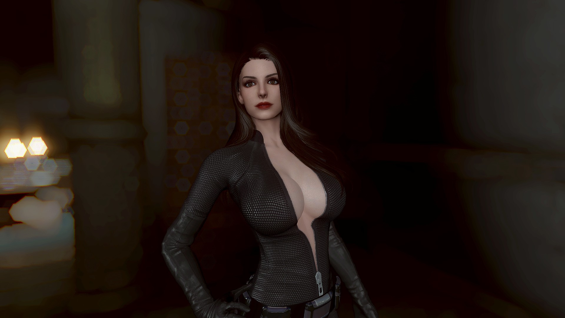 Селина Кайл носит костюм женщины-кошки и вы можете настроить ее наряд через диалог. У нее есть маска и парик smp в инвентаре. Чтобы использовать парик, вам нужно установить патч (опциональный файл smp-pe path).