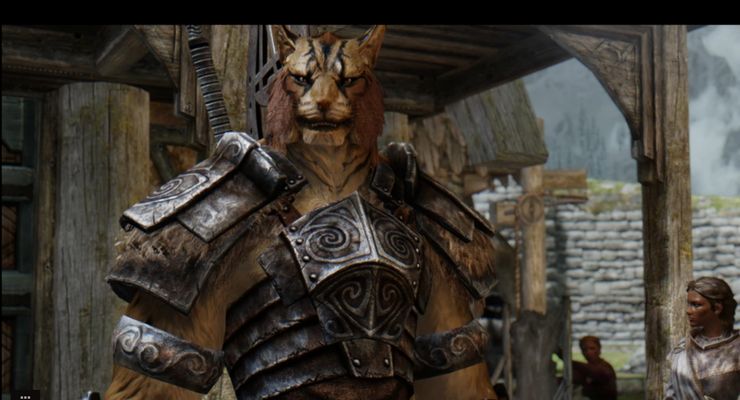 Кейко: каджит, двуручный воин, предпочитает тяжелую броню.
