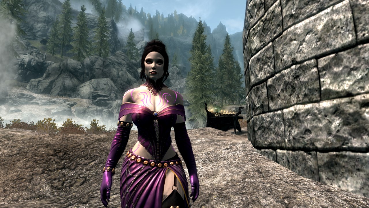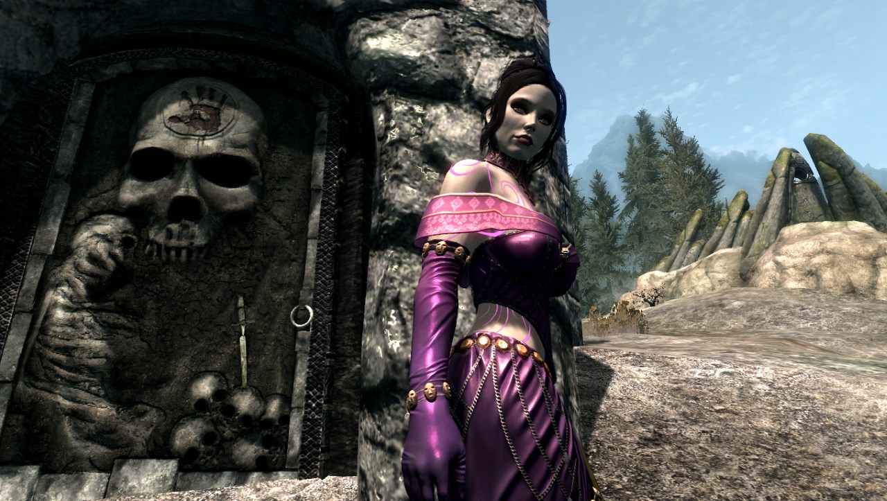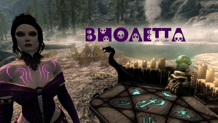 В инвентаре Одеяние Некроманта (3 варианта с физикой), серебряные мечи, которые эффективны против нежити. Специалист по одноручному оружию, блокированию, скрытности, колдовству, восстановлению и зачарованию. Виолетта использует в бою серебряные мечи, магию школы колдовства, призывает себе на помощь различную нежить.