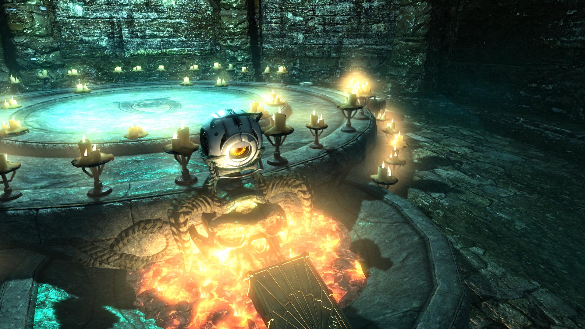 Ребята из Valve в честь открытия мастерской для Скайрима в steam подготовили для нас вот такой небольшой, но чертовски забавный мод, добавляющий на просторы Скайрима модуль космоса из игры Portal2, этого маленького, постоянно болтающего робота можно повстречать где-то около Вайтрана. А еще с его помощью можно изготовить специальный шлем в кузнице атронахов, для чего понадобится железный шлем и 10 лунных камней.