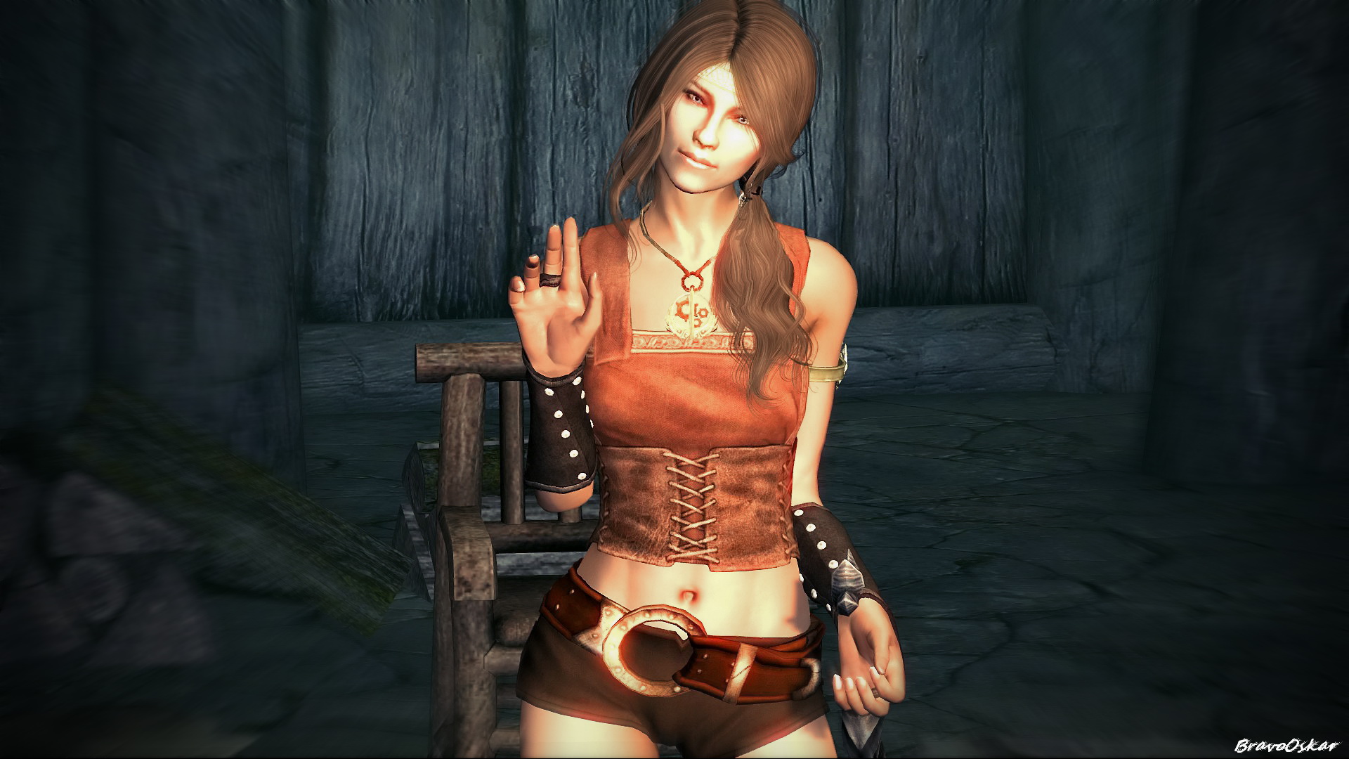 Бессмертна. Кандидатка в жены. Уровень автоматически растет с уровнем игрока. Совместима с модами UFO, Extensible Follower Framework и Convenient Horses. Находится в "Мертвецком меде" в Фолкрите.