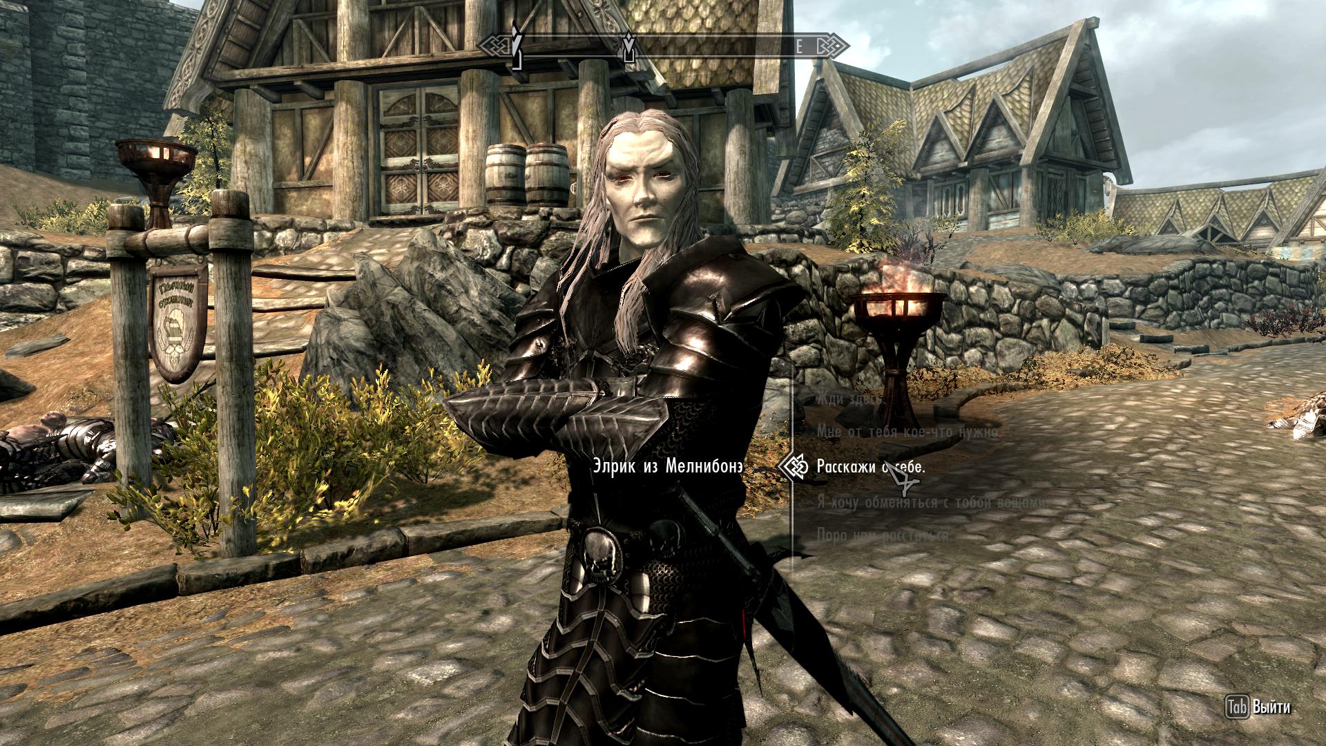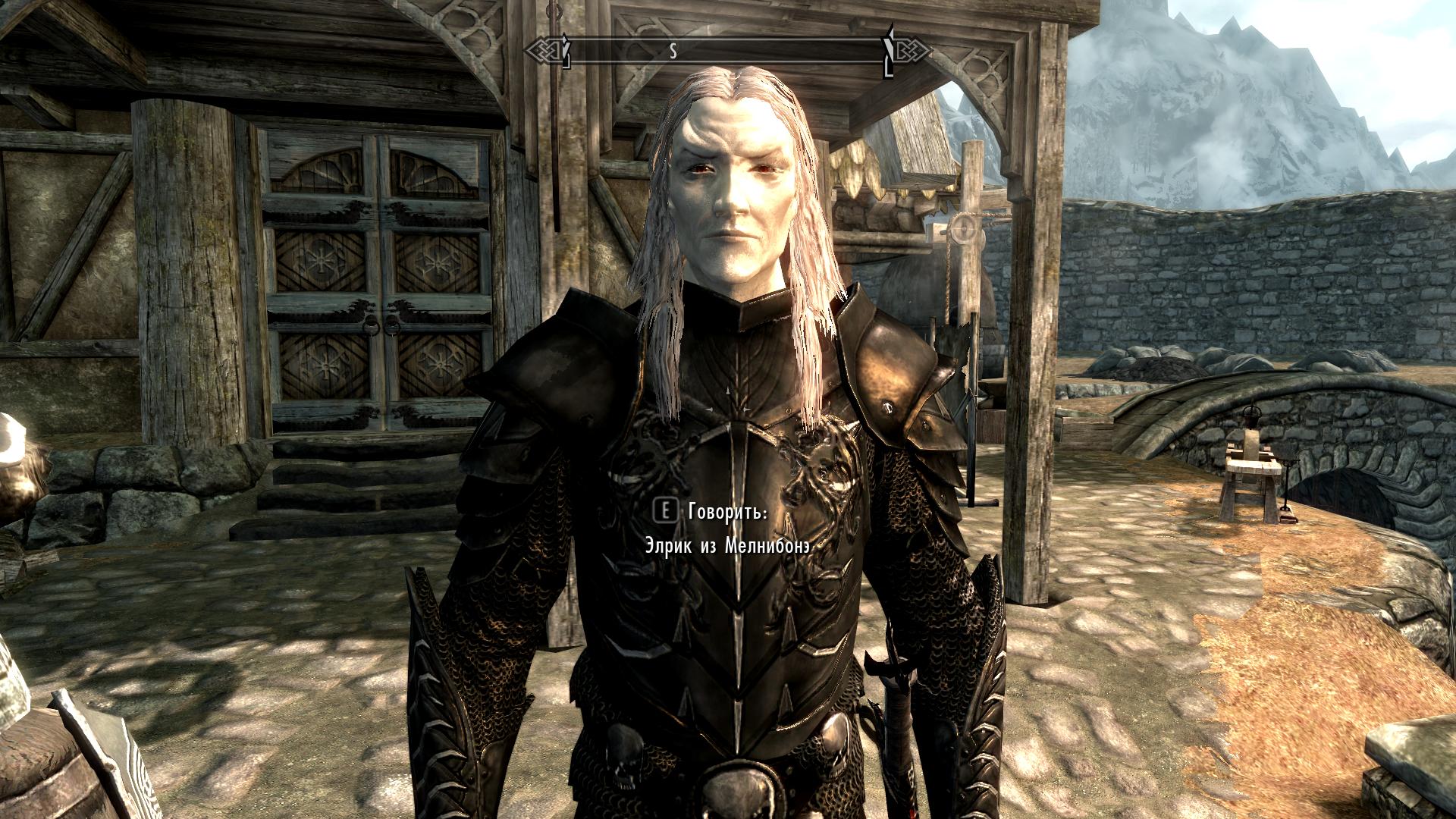 В Skyrim Элрик является альтмером-воином. Элрик облачен в особую броню, но самое главное, что у него есть - это Кольцо Королей и меч Буревестник. Кольцу я добавил довольно значительное увеличение запаса маны (+70), а мечу - способность поглощать здоровье врага (как у даэдрического Эбонитового клинка, но сильнее). В остальном Элрик имеет стандартные функции компаньона и присоединяется к вам сразу же.