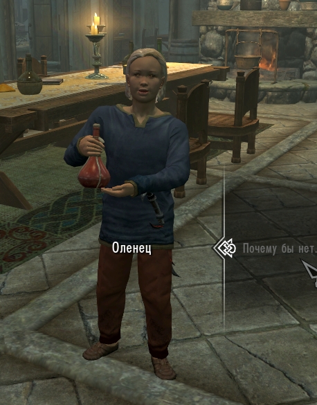 путаться под ногами. Но если храброму Довакину снесут половину здоровья, Оленец придет на помощь. Но если Довакин, не смотря на такую поддержку, окажется на краю гибели, Оленец перенесет в безопасное место, вылечит и...
