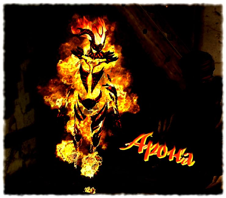 Арона - аномалия, неудачно призванная магом-недоучкой. Всё произошло в Вайтранской таверне "Пьяный охотник". Неизвестный молодой маг, бывший ученик Коллегии Магов Винтерхолда, с пьяных глаз решил, что он уже получил достаточно знаний и вполне может самостоятельно призывать существ. В результате его деятельности в сём мире появилась Арона - огненный атронах. Мага арестовали, за призыв и посадили в тюрьму, где он и скончался. А Арона по неизвестной причине так и осталась в этом мире. Поначалу вызывали магов, чтобы изгнать даэдра обратно в Обливион. Но Арона решила, что в этом мире ей будет лучше, и упрямо не хотела возвращаться, а может маг-недоучка напортачил, и атронах теперь не может вернуться обратно. Так, или иначе, а с тех пор жители Вайтрана привыкли к новому обитателю местной таверны. А хозяин "Пьяного охотника" даже подружился с ней, ведь она теперь завлекает новых посетителей своим необычным видом, голосом, странными взглядами на сей мир, и помогает выгонять особо буйных.