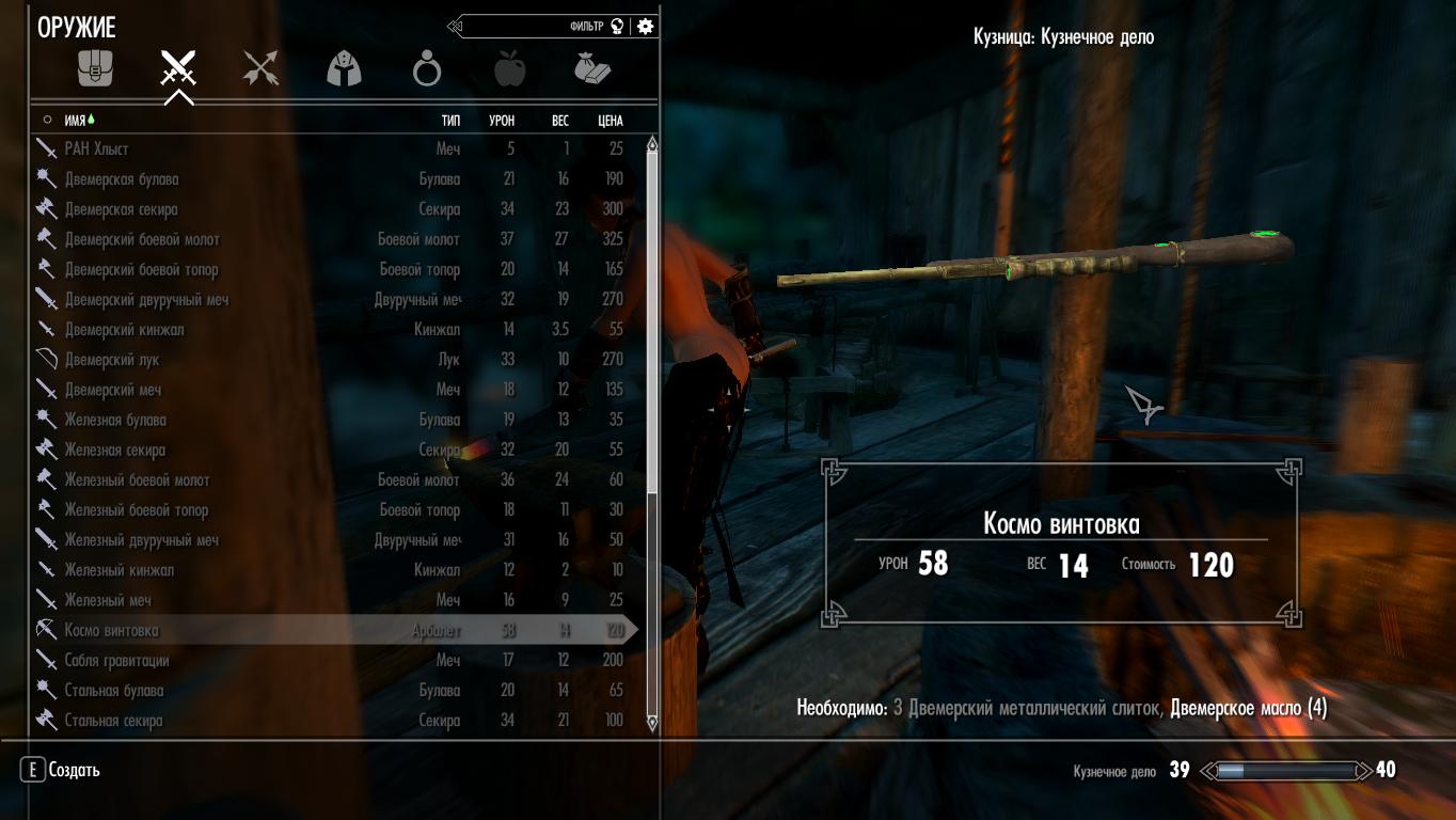 Это оружие можно выковать в кузнице. Винтовка имеет тип арбалета. К ней идут как космо пули, так и обычные арбалетные болты.