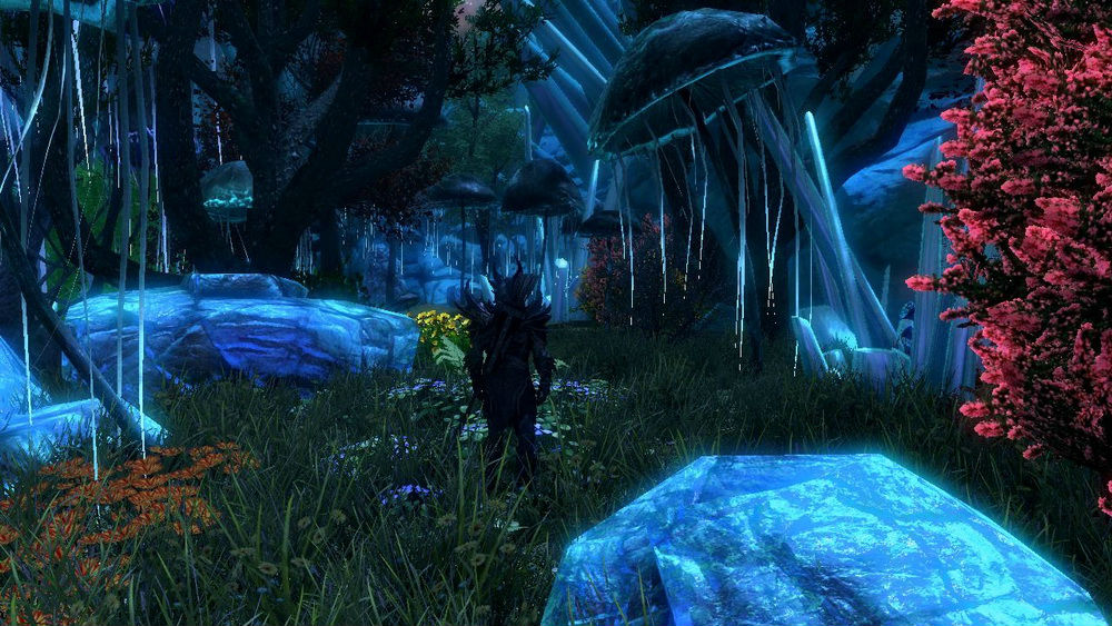 Царство настолько красиво, что посещающие его смертные наполовину слепнут. Царство содержит цветы, светящиеся грибы и водопады, величественные деревья, гигантские кристаллы и город серебра. Ветер пахнет духами, небо находится в постоянном сумерках, и, как известно, царство обладает присущим ему светом. Азура живет в розовом дворце и приветствует смертных путешественников. Здесь обитают несколько видов существ, таких как крылатые сумерки, сумеречные пантеры, лунные циклопы, хрустальные черепахи, дельфины, ядовитые слизни и другие. В кристаллических долинах Лунной Тени есть несколько Залов Воспоминаний - красивых айлейдских палат с функцией хранения воспоминаний внутри кристаллических сфер, от сильных форм и архетипов всех живых существ Тамриэля, живших на протяжении веков. И именно вам предстоит их одолеть. Справитесь? Нет? Покажут лишь бесчисленные попытки. Удачи.