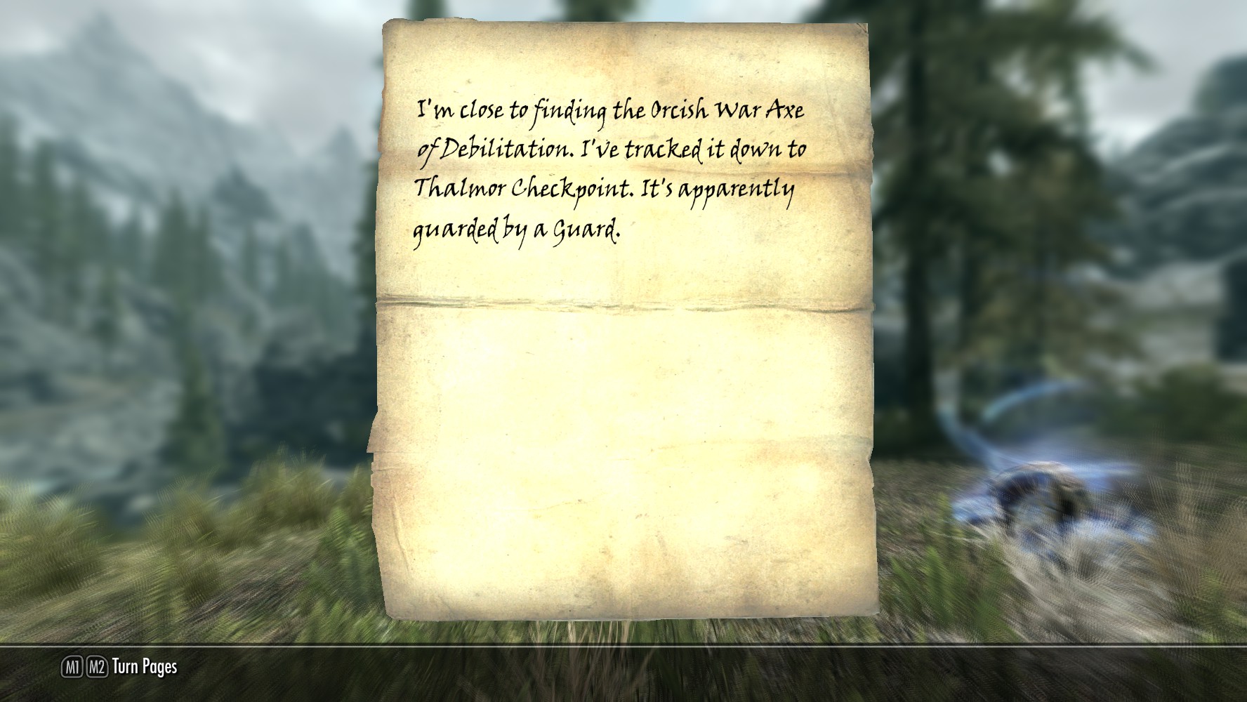 Вам нужно прибыть к Талморскому контрольно-пропускному пункту и разузнать что же здесь забыли Талморцы.