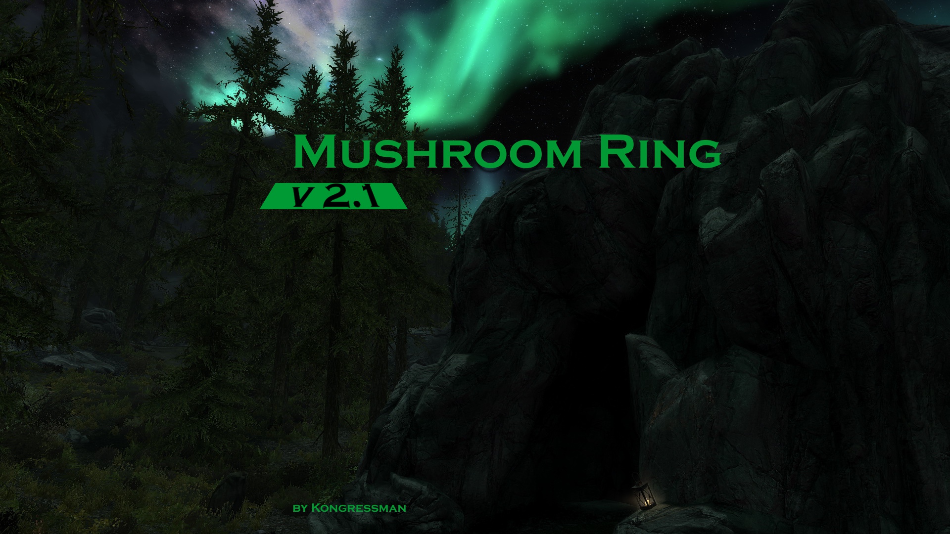 <span style="color:#006400;"><strong>УСТАНОВКА</strong></span>: Скопировать папку Data из архива в папку с Skyrim и активировать плагин <span style="color:#006400;">MushroomRing_v.2.1.esp</span> в вашем лаунчере. Дальше загрузитесь и сохраните игру в новый слот. Загрузите это сохранение и играйте!Если у вас установлена прошлая версия мода, то сначала отключите его, в игре сделайте чистое сохранение (без этого мода), установите и подключите новую версию, загрузитесь и сохраните игру в новый слот. Загрузите это сохранение и тоже играйте!*Сохранение и загрузка после установки плагина связаны с тем, что сразу после установки не работают диалоги, но F5-F9 лечит эту проблему.