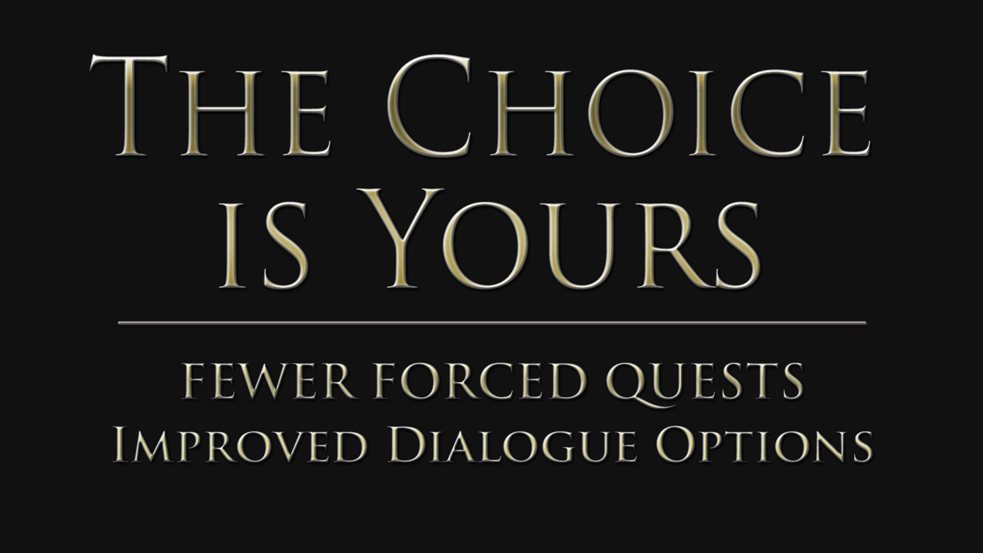 - Мод не удаляет диалоги, персонажей или квесты из игры. Вы услышите все те же слухи и приветствия, но у вас появится возможность взять квест или отказаться от него.