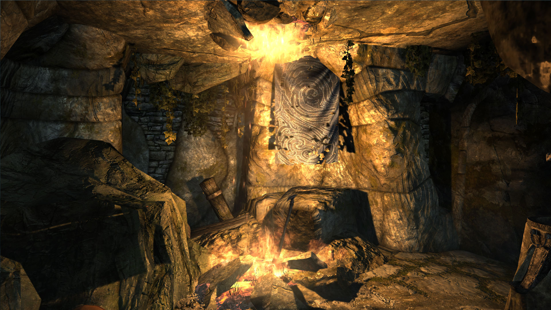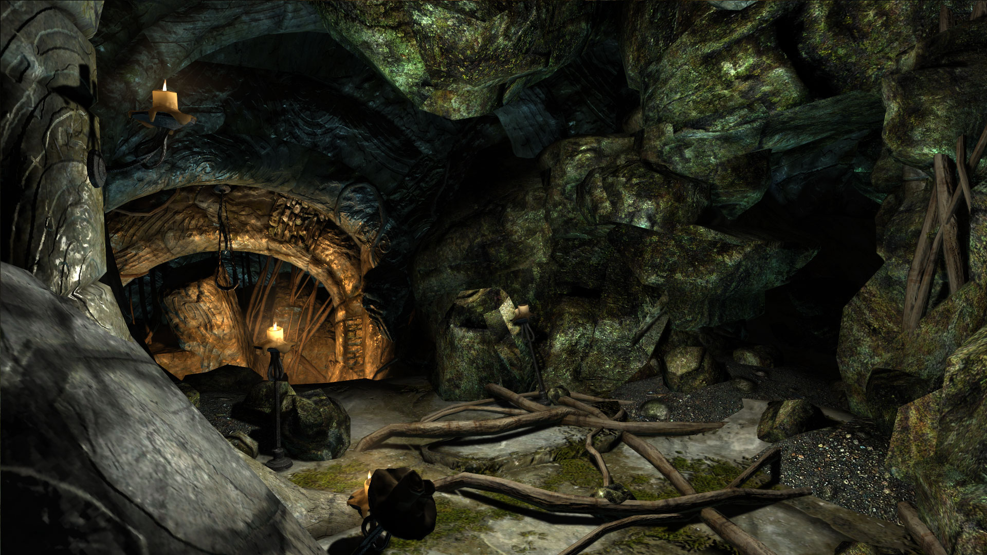 - Уровни подземелья главным образом сделаны в нордском стиле, в некоторых из пещер присутствуют двемерские элементы. Квест вы берете для того чтобы добраться до нижней части подземелья, где древний секрет ожидает тех, кто с презрением смотрит на мир создателей, ничего не боясь.