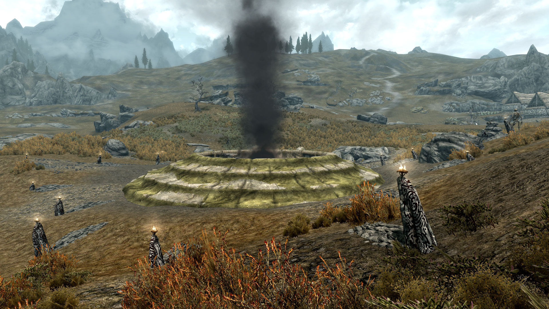 - Вход в подземелье находится к востоку от Рорикстеда (см. скриншот ниже). Любые моды, которые размещают объекты в этом месте будут вызывать конфликты.