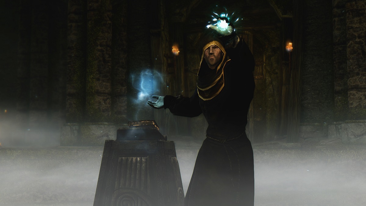- Уровень поглощения заклинаний/здоровья зависит от прокаченности ГГ (Блокирование и Восстановление); также чем ниже здоровье ГГ, тем выше поглощение.
