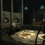 Скелет - самый простой слуга, которого может оживить даже новичок Некромантии. Для начала нужно найти подходящий материал - это либо целый скелет, либо труп любого человека. Во втором случае нужно принести труп на Алтарь, но учтите, что большинство жителей не одобрит этот поступок, плюс ко всему само тело весит неприлично много. После того как труп окажется на Алтаре, нужно срезать всю лишнюю плоть. Далее можно приступать к оживлению, для этого требуется костная мука, паслен и соль пустоты (последний можно заменить на заполненный черный камень душ). Однако, перед оживлением скелета его можно усилить при помощи полосок кожи и металлолома. Усиленный скелет обладает большим здоровьем и есть вероятность повторного оживления после смерти. Таким образом реанимированный скелет будет с вами до конца своей жизни. Скелет не может использовать магию и одевать одежду, кроме колец и амулетов. Навыки скелета такие же какие были у него при жизни.