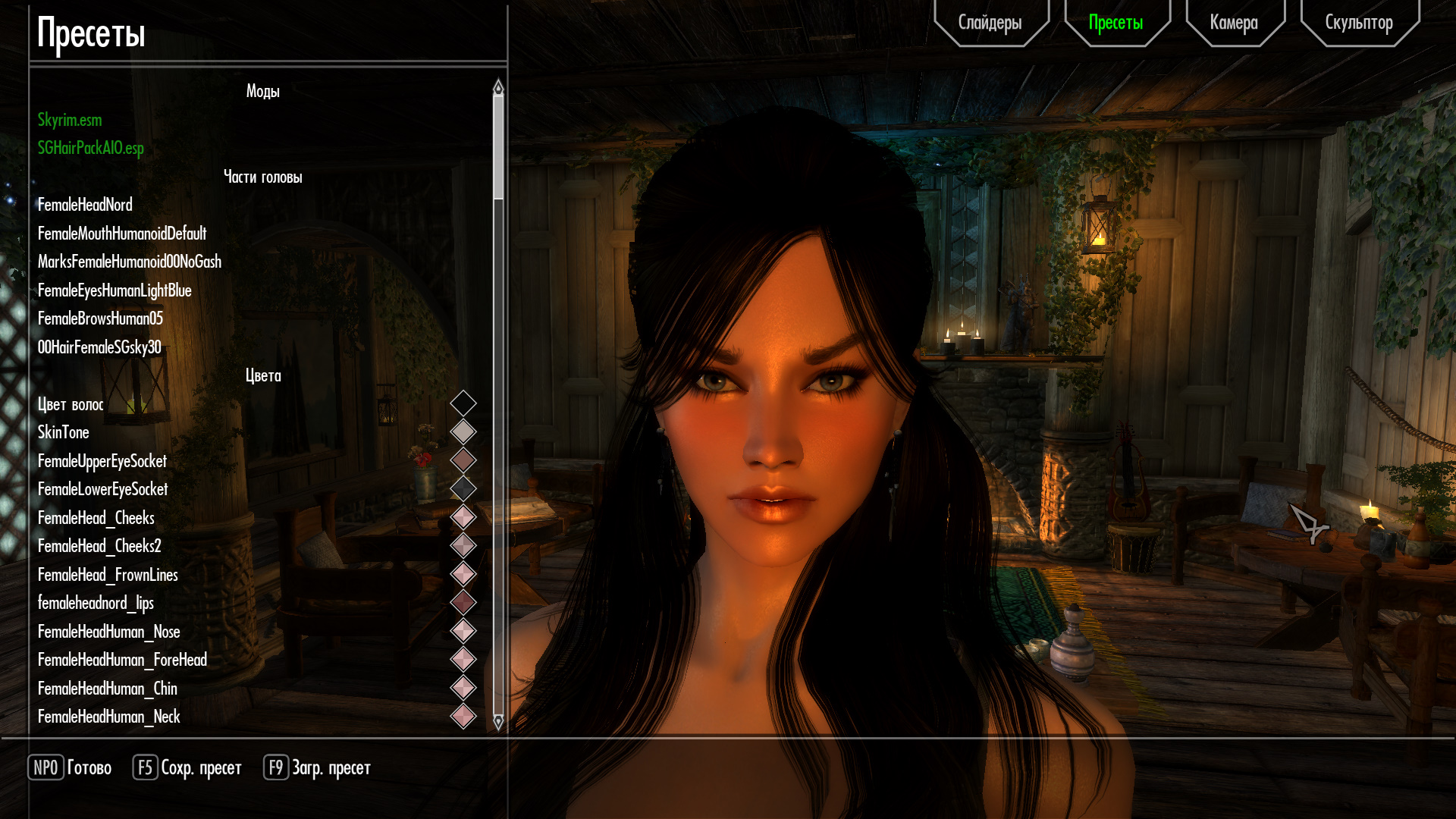 2. Sara.jslot по пути "Data \ SKSE \ Plugins \ CharGen \ Presets".