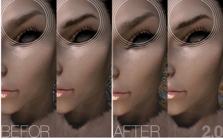 Плагин изменяет все текстуры женских лиц (имперцев, нордов, бретонов, редгардов, темных эльфов, высших эльфов, лесных эльфов).