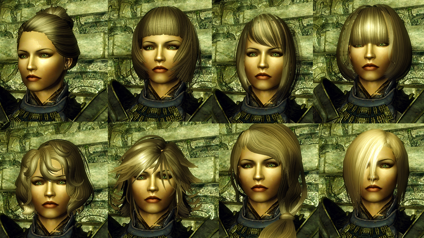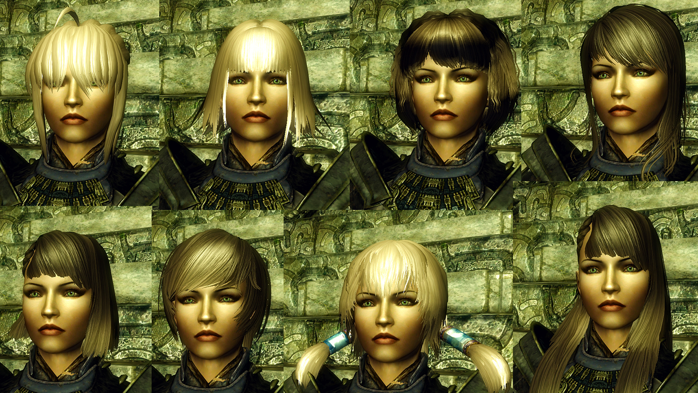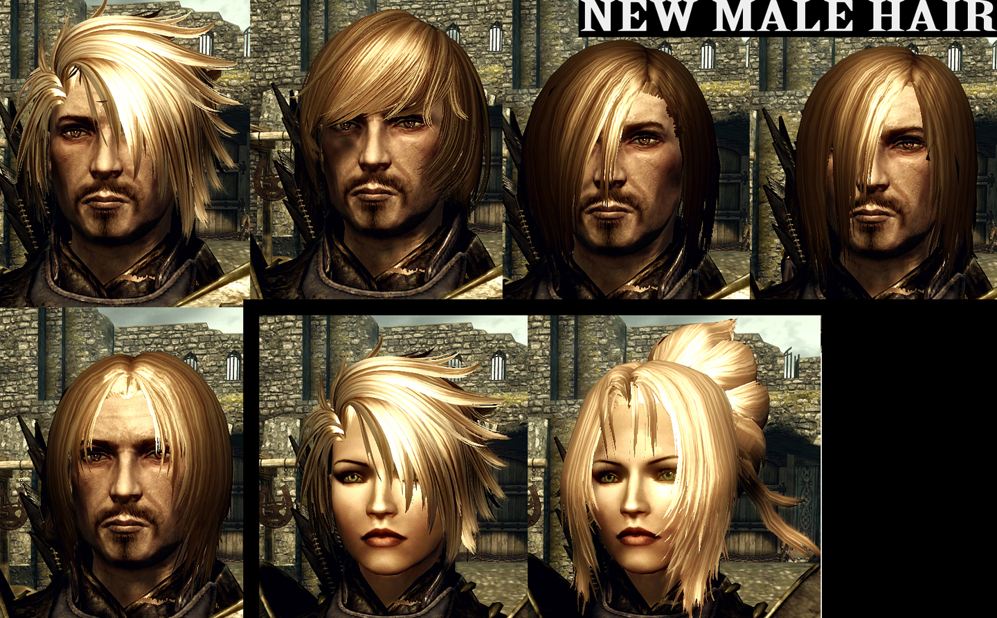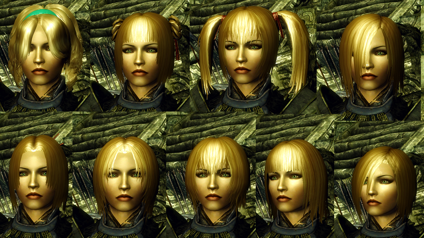 Это конверсия известного пака для Oblivion от Lucha. Теперь с есп-файлом. Внесены исправления, добавлены новые варианты, улучшены текстуры, прически распределены по расам. Добавлено несколько причесок для парней.