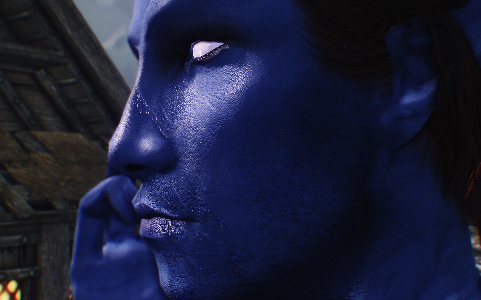 Есть маленькая проблема, поставил текстуры. С ванильными телами идёт всё замечательно, без швов, но! Если персонаж (в данном случае NPC) находится вдали от источника освещения, голова становится коричневой, даже близко к черной. Опять же тестировал в начале игры, данный визуальный баг был только на имперских солдатах. Раньше сталкивался с этим, такая же голова была у Маркурио, как исправил не помню(