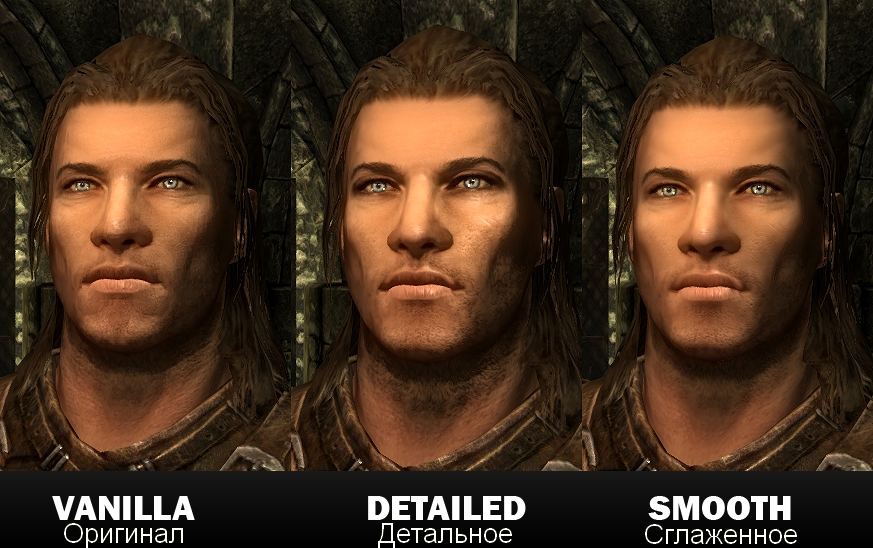 Ванильные текстуры лиц - шикарны !!! Они натуральны морщинки дефекты - все учтено ! Но жаль что нуд моды заменяют и лица С огромным трудом отыскал более менее приличные текстуры для женщин - теперь проблема с мужиками ! КРУГОМ ОДИН ПЛАСТИК !!!