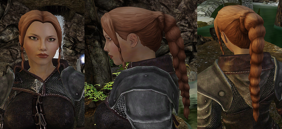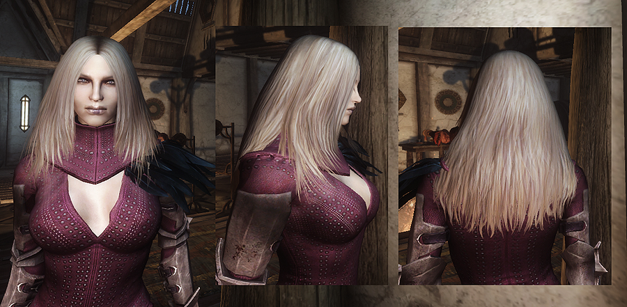 От автора: Это обычные прически, которые по всем параметрам похожи на игровые, так же пропадают под шлемом и капюшоном, иногда врезаются в броню и иногда имеют проблемы с прозрачностью. И еще - тут нет tri-файлов, так что возможны проблемы с подгонкой размера головы.