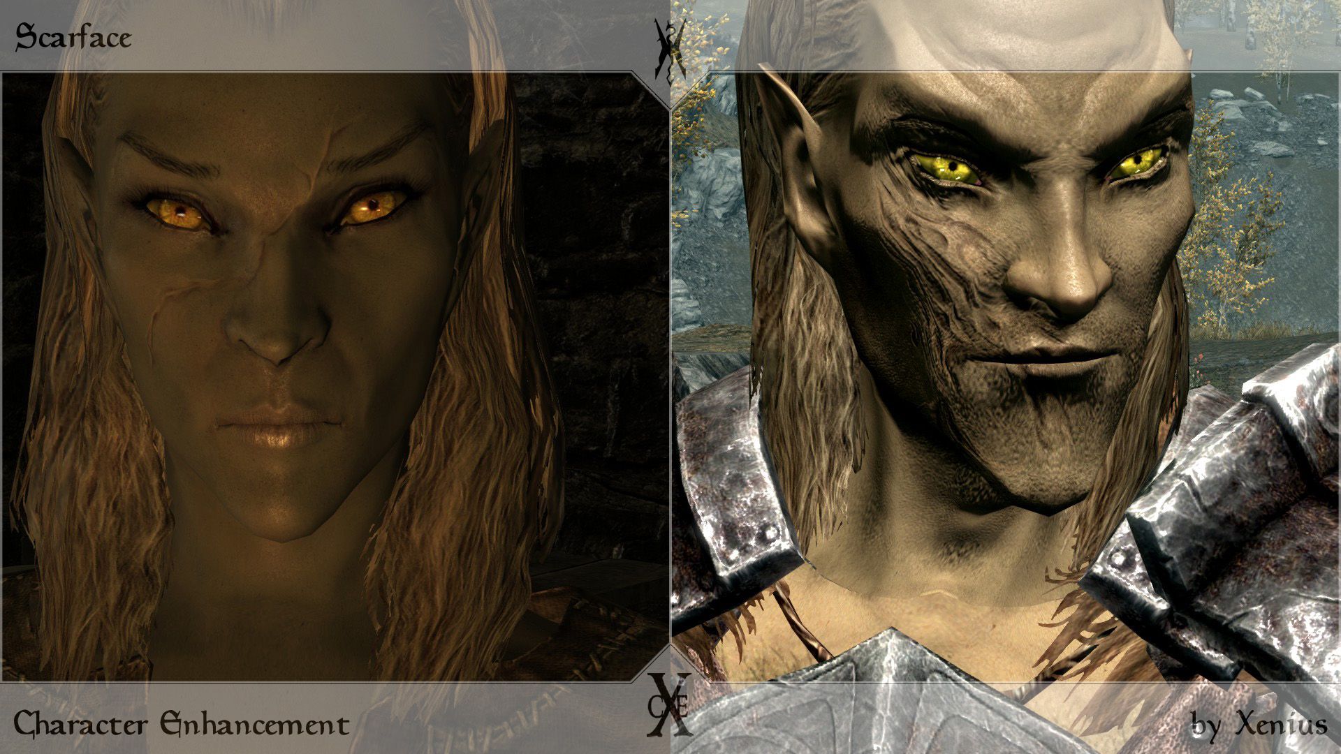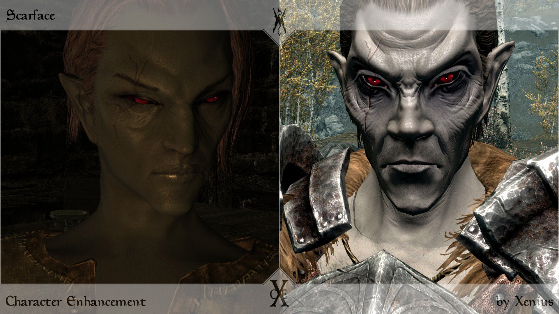 Добавляет в игру 16 шрамов в различном стиле: боевые рубцы, ожоги, ритуальные шрамы. Они будут доступны человеческим и эльфийским расам, включая вампиров.