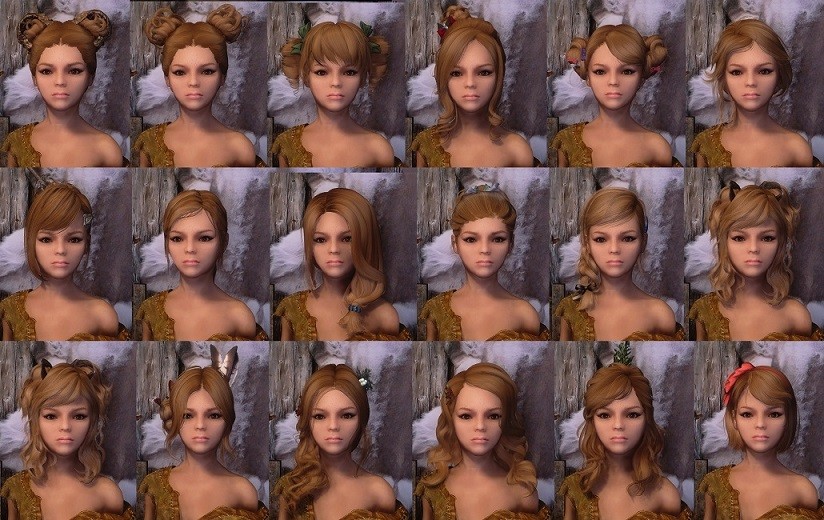 Мод добавляет в Скайрим 18 новых уникальных женских причесок с различными аксессуарами.