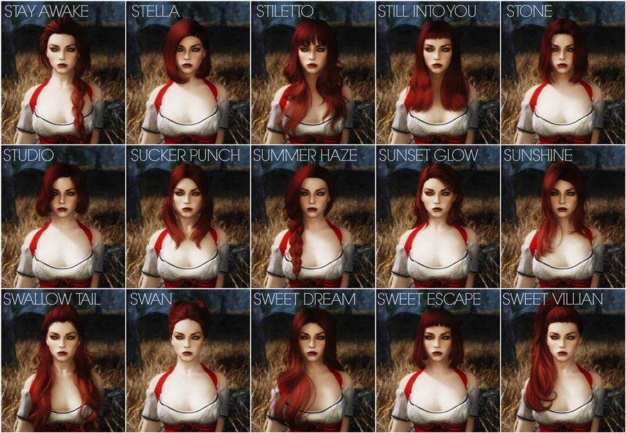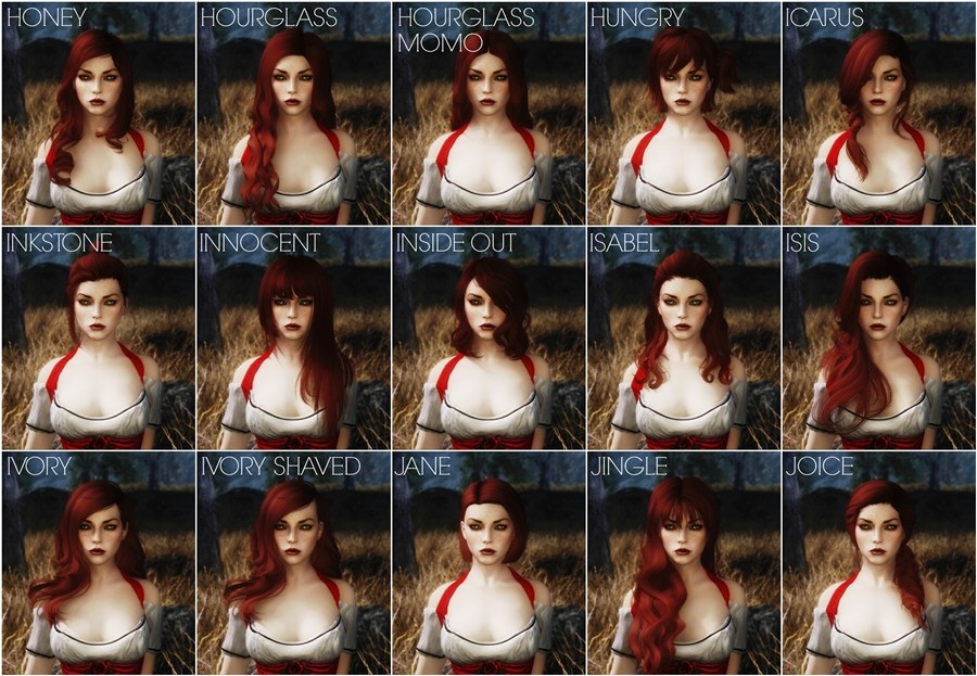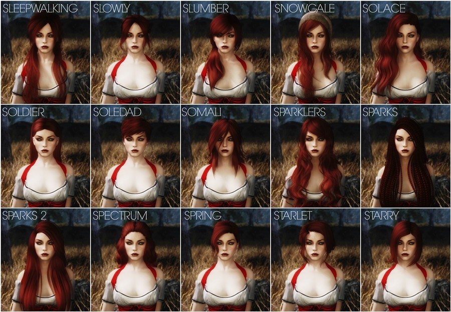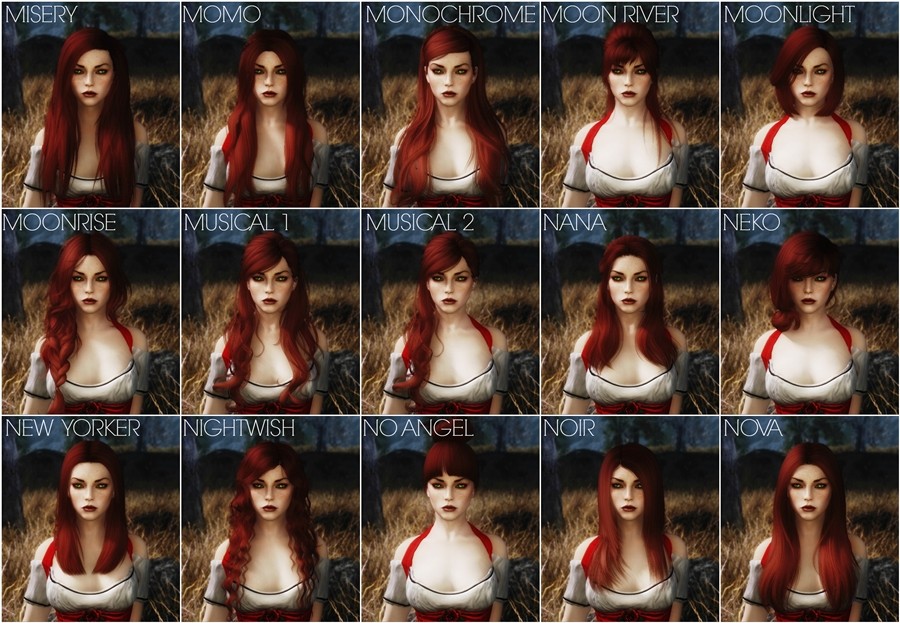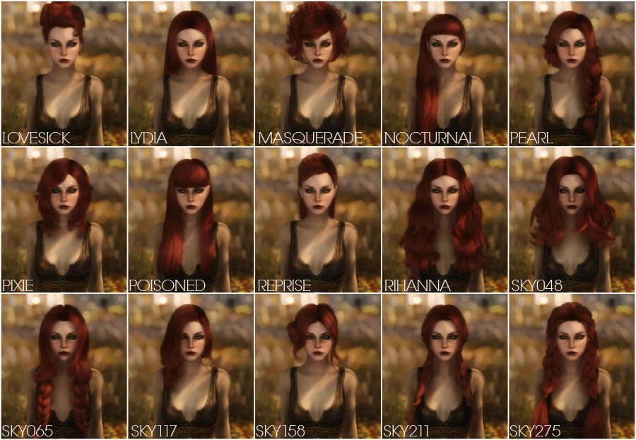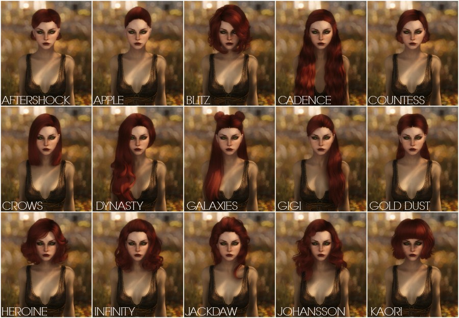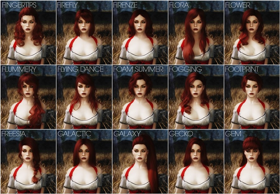 KS Hairdos содержит 655 прически, 582 женских и 73 мужских. У всех причесок красивые и реалистичные текстуры, а также отличная привязка к телу. Имеется поддержка эльфийских рас.