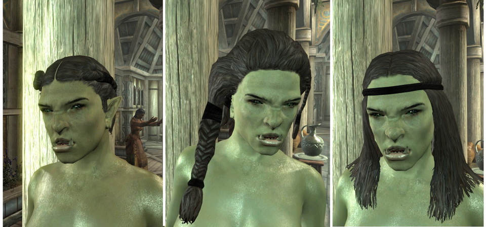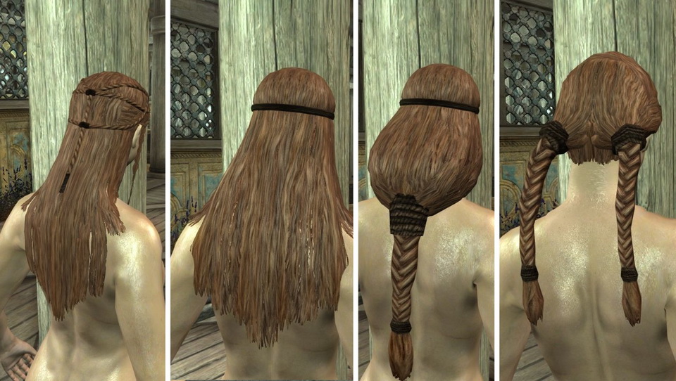 * Существует несколько моделей волос для игры Скайрим, которые добавляют много причесок, такие как KS Hairdos - Renewal или ApachiiSkyHair, но эти прически не выглядят естественными в Скайриме.