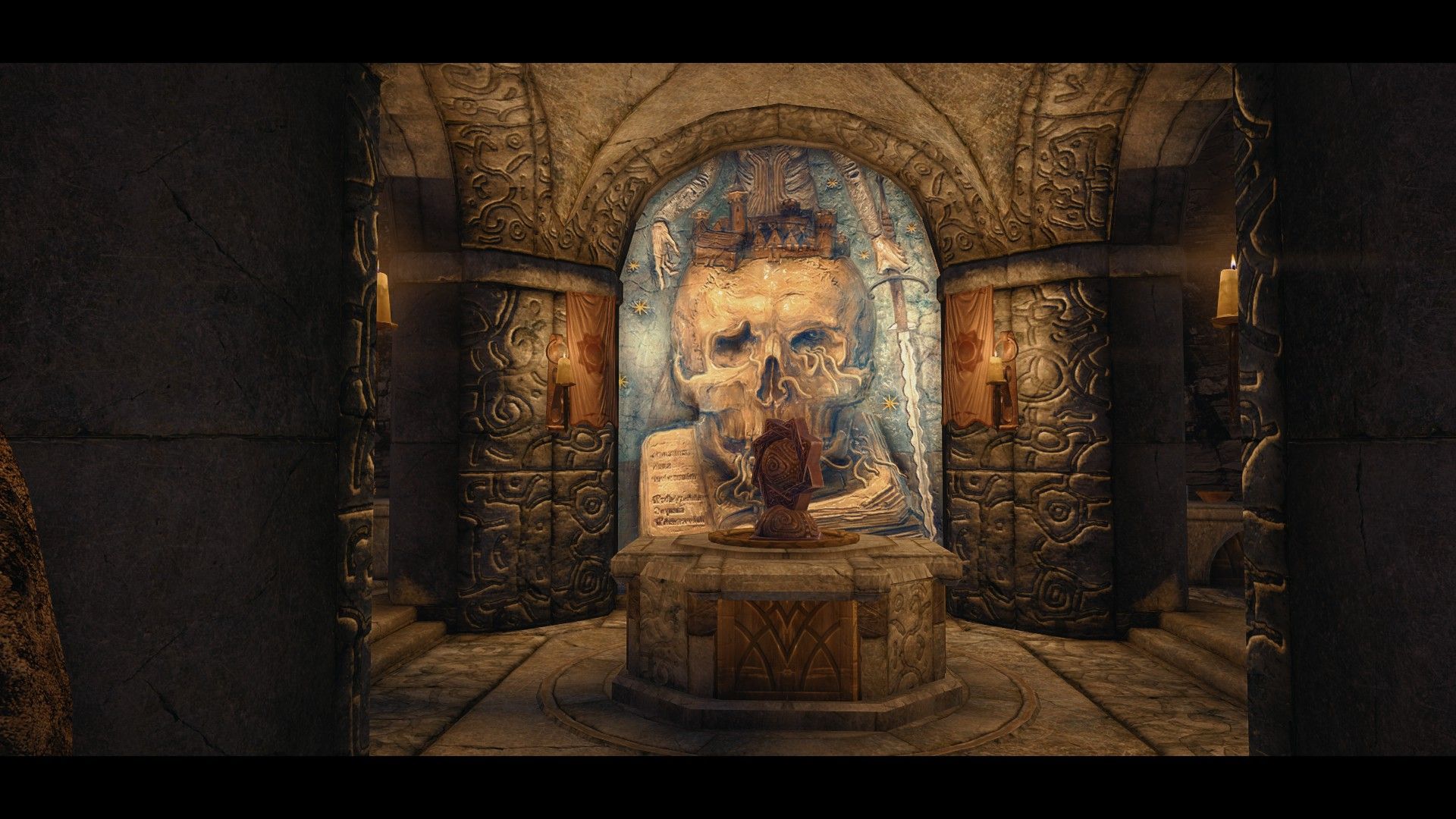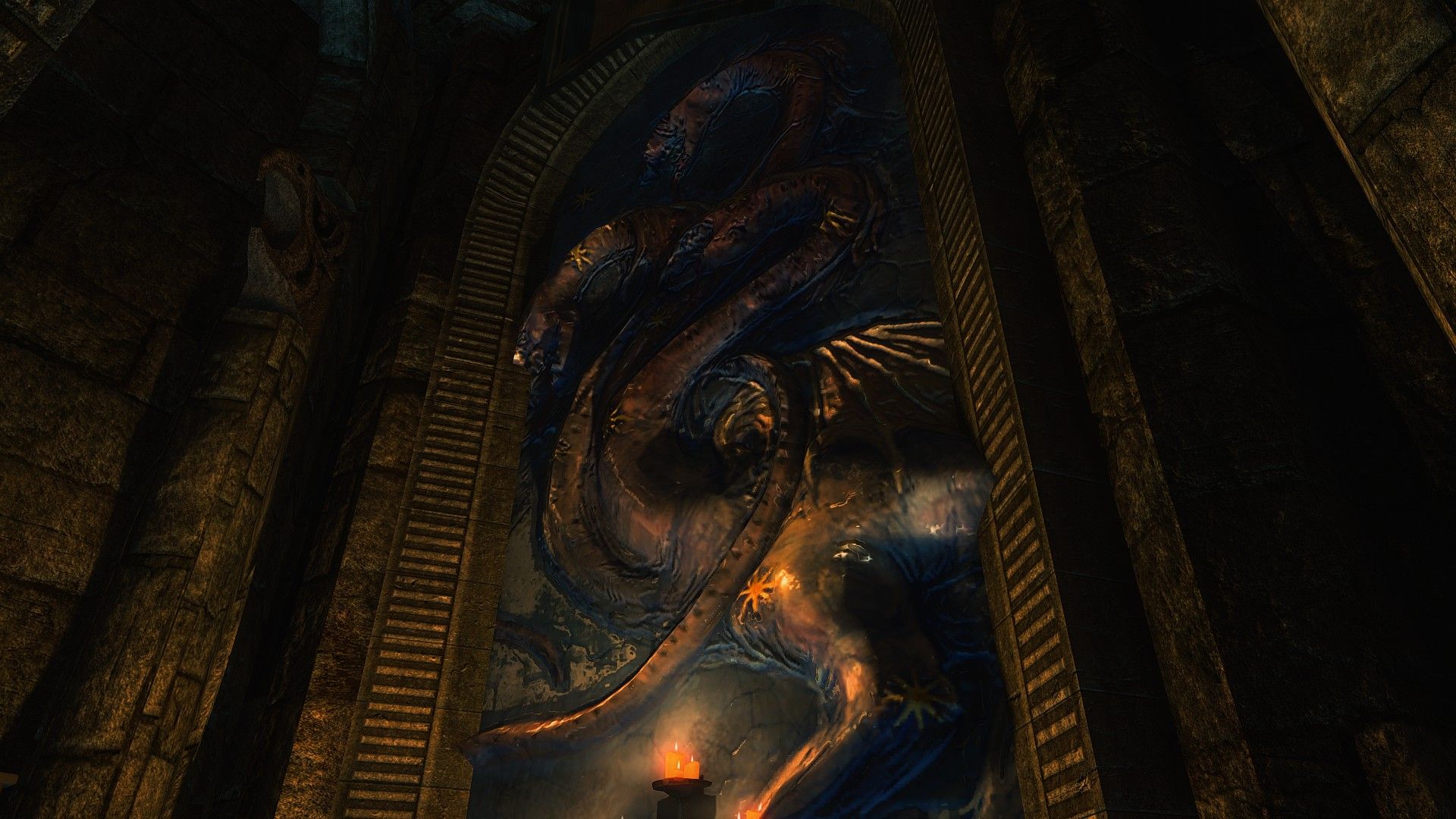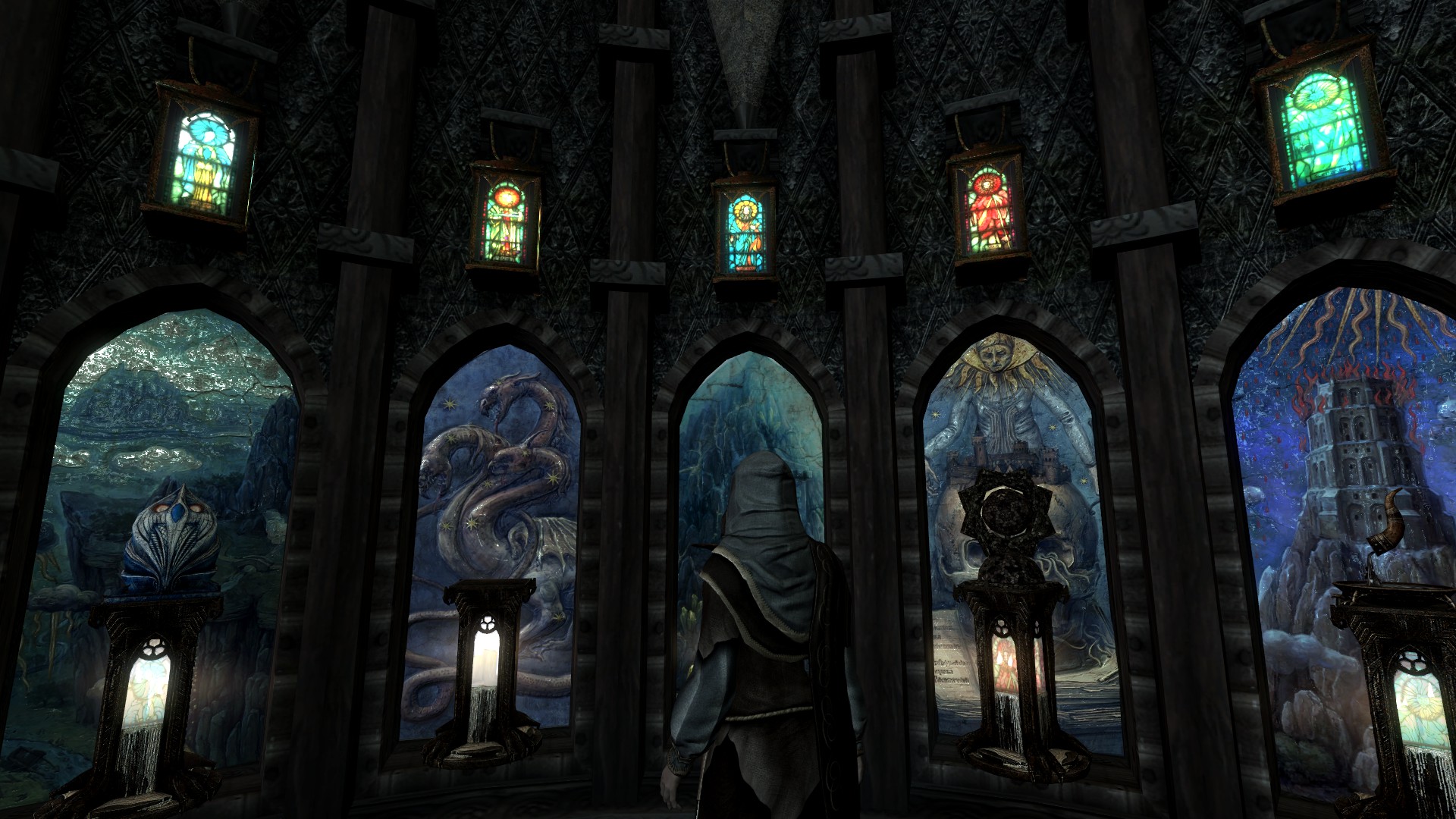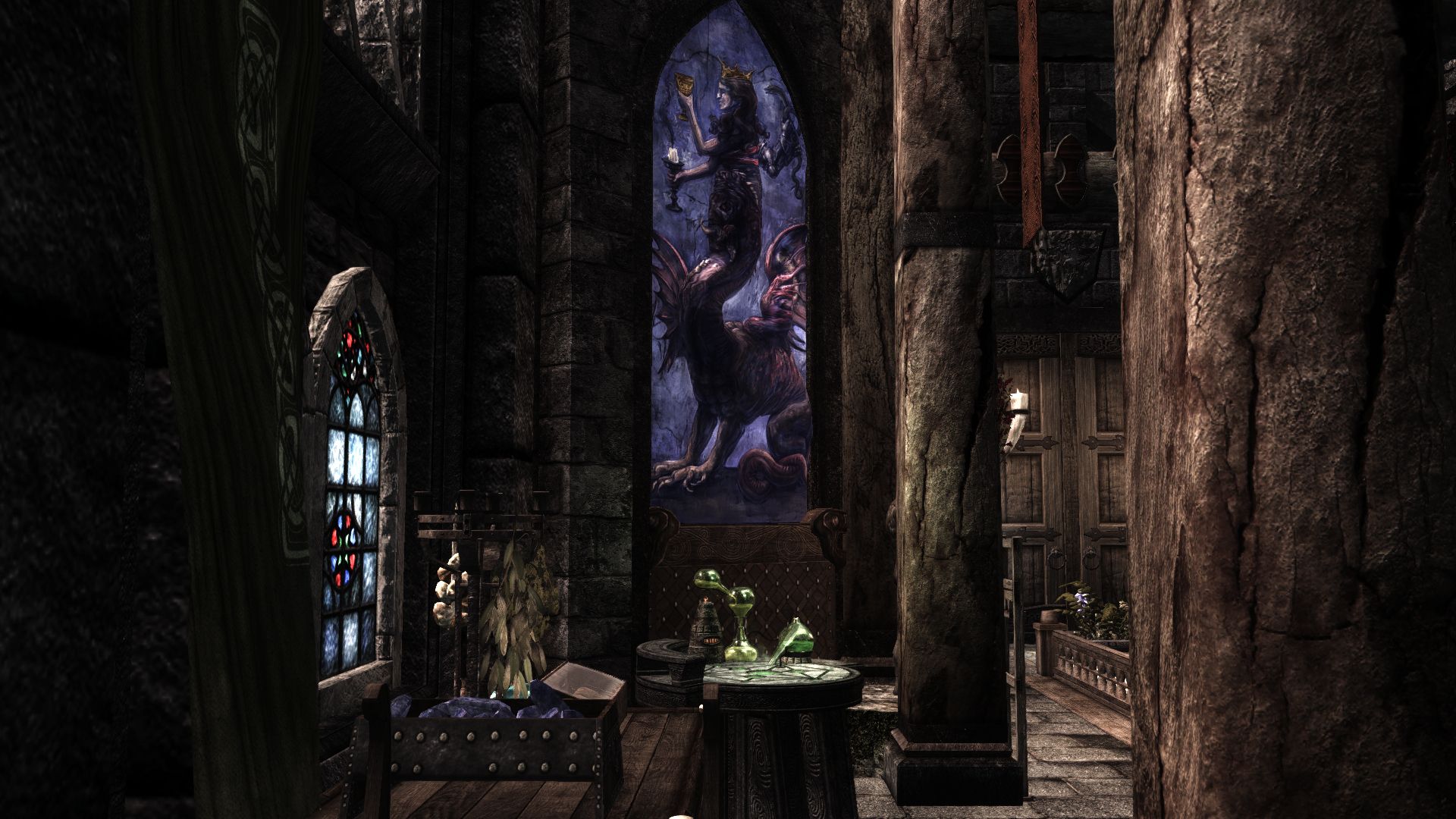 - фрески добавлены в Храм Богов Солитьюда, все залы мертвых, прочие храмы и места, имеющие алтари (а именно: в ночлежку Хельги, храмы Талоса, Мары, Дибеллы, Кинарет; покои архимага, Зал стихий, Арканеум - в Коллегии Винтерхолда, естественно; Мрачный Замок (Императорская Башня), внутреннее святилище храма Ауриэля).