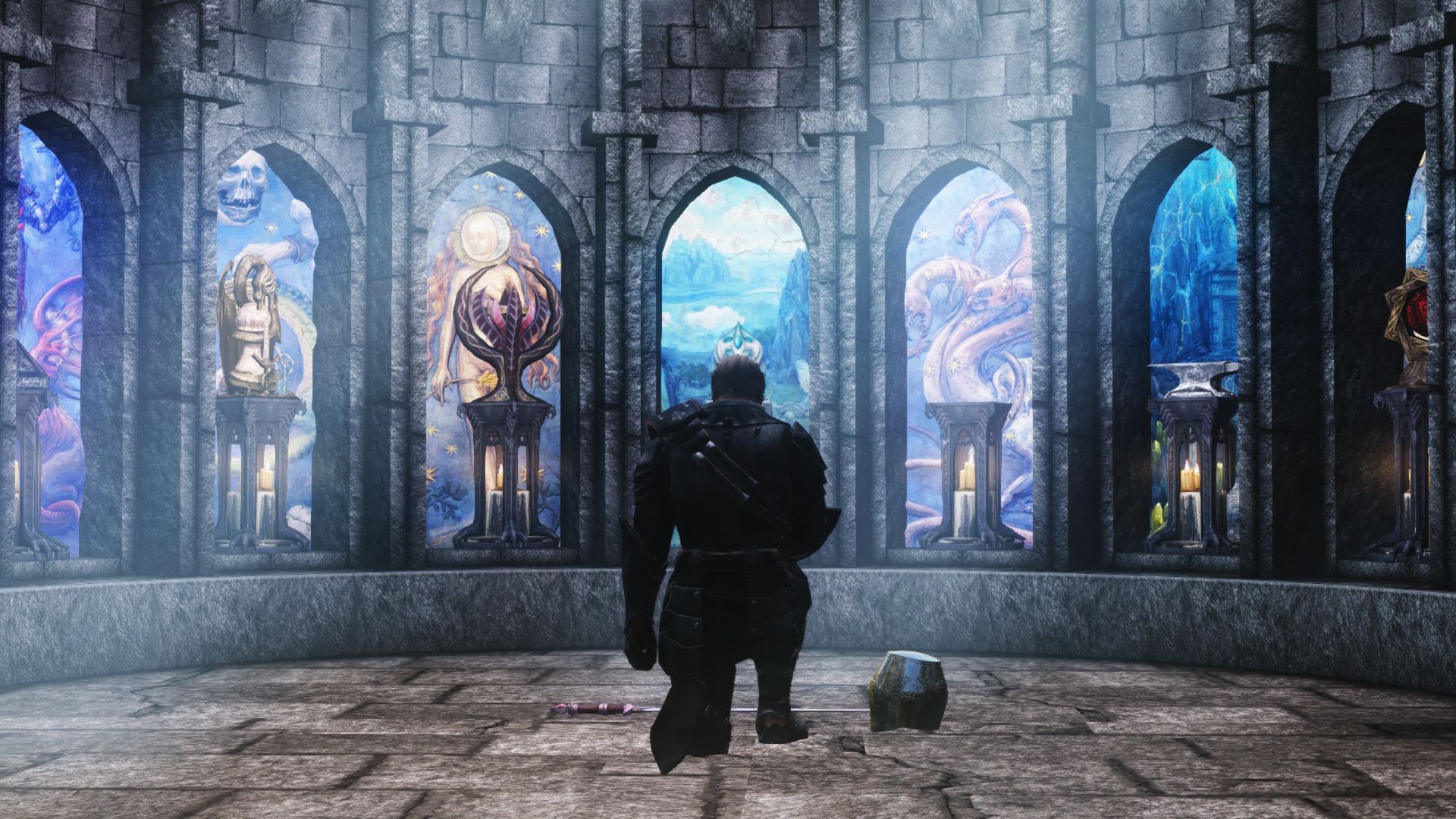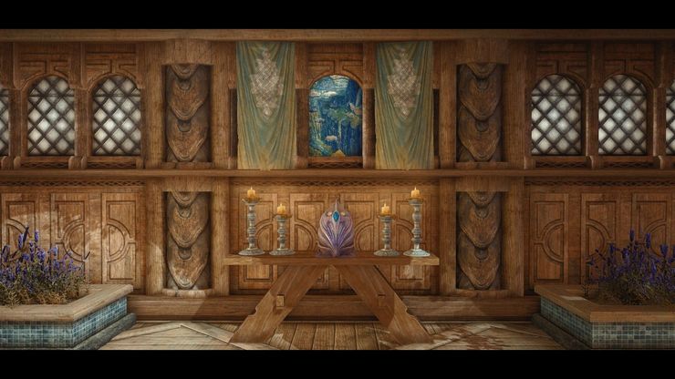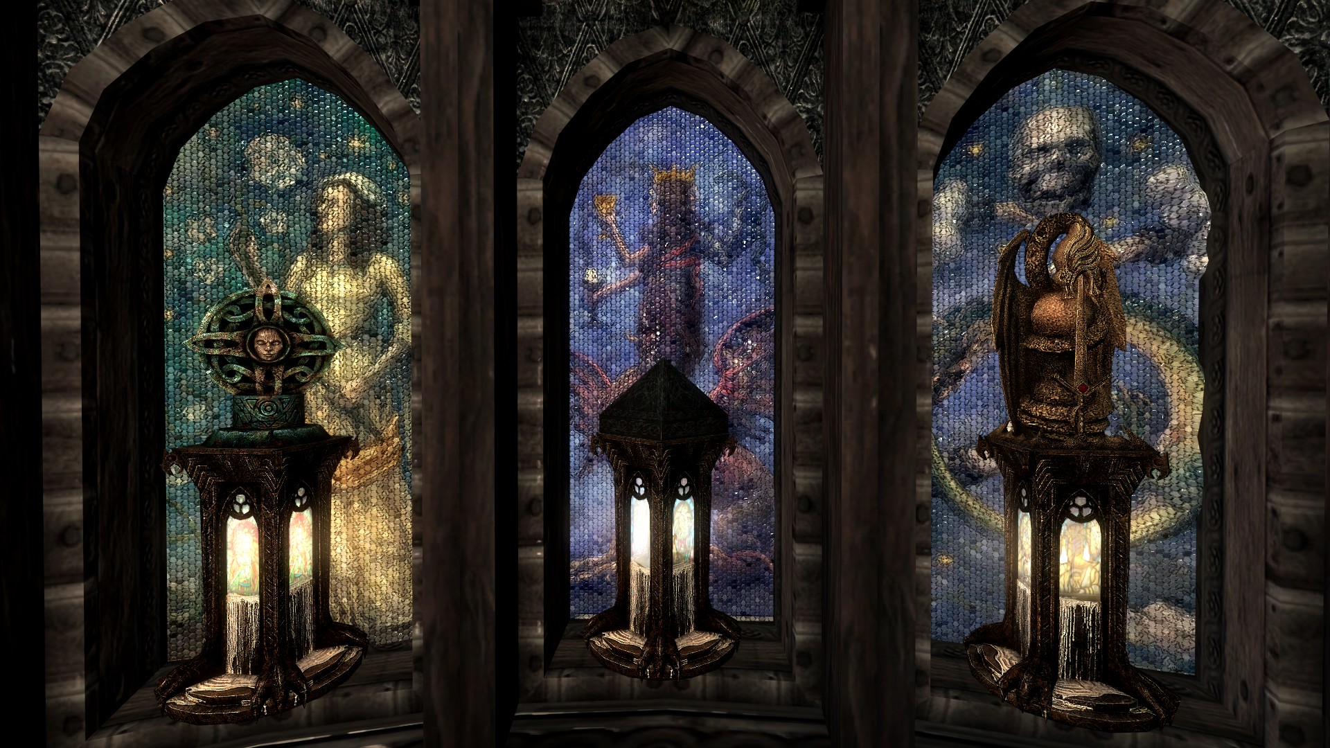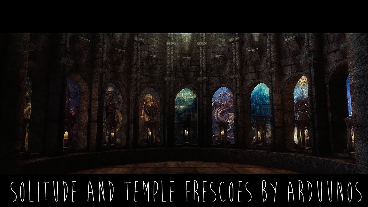 Мод добавляет в Храм Богов Солитьюда и другие священные места очень красивые живописные фрески. Автор всегда считал, что Храм Богов неплохо бы приукрасить с помощью какого-либо декора, и когда увидел модели данных фресок (ресурс из игры "Ведьмак"), то сразу понял, где их можно использовать. Ниша каждого божества теперь украшена фреской, хорошо иллюстрирующей его сущность. Фрески имеют приятный 3D эффект, который легче увидеть в игре, чем на скриншотах.