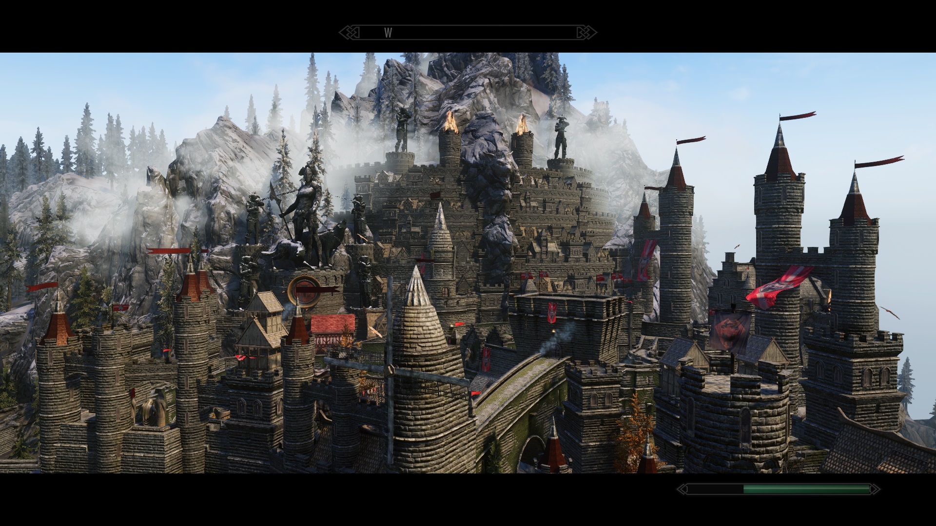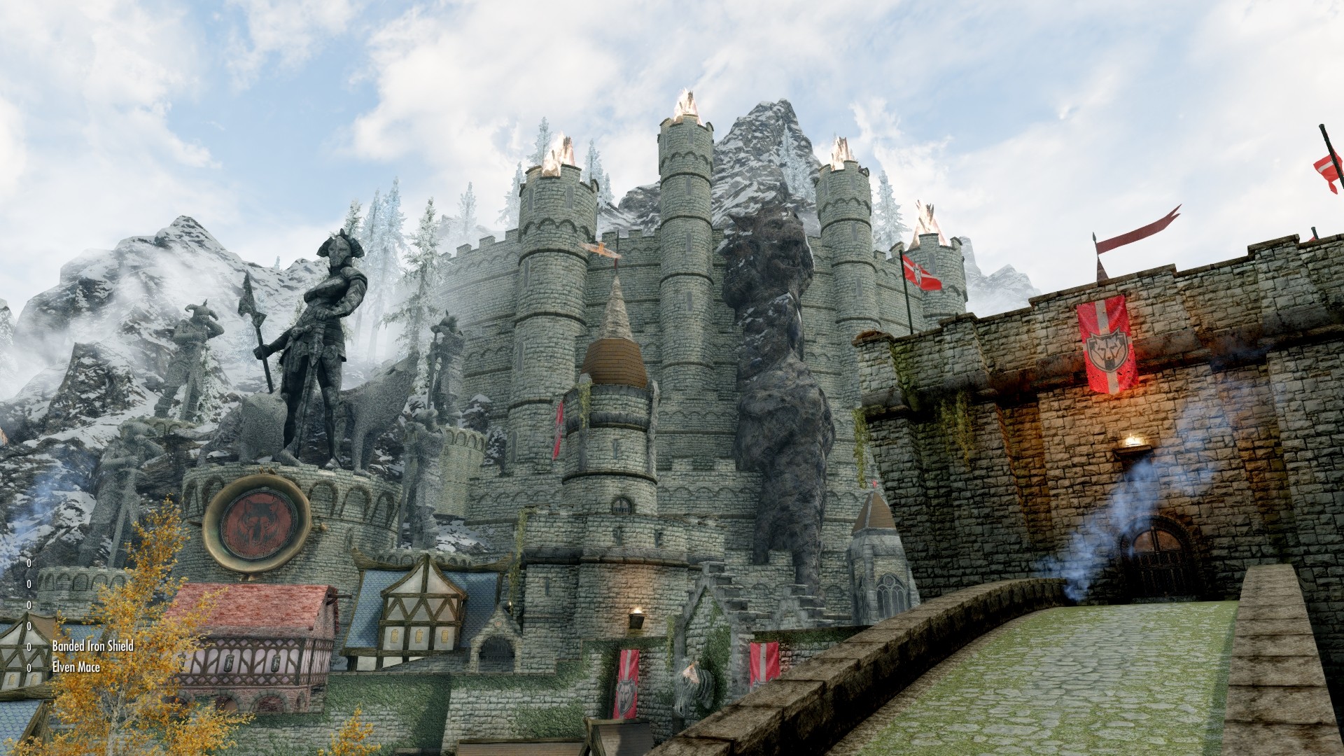 В горе, возвышающейся над Солитьюдом сделан мини-город (недоступен для игрока, и существует исключительно для красоты). Он был вдохновлен Минас Тиритом из трилогии Питера Джексона "Властелин колец" с большой скалой - выступом, разделяющей город. На ней находится большая волчья голова, вырезанная в самой горе. Я думаю, она тоже выглядит довольно эпично.