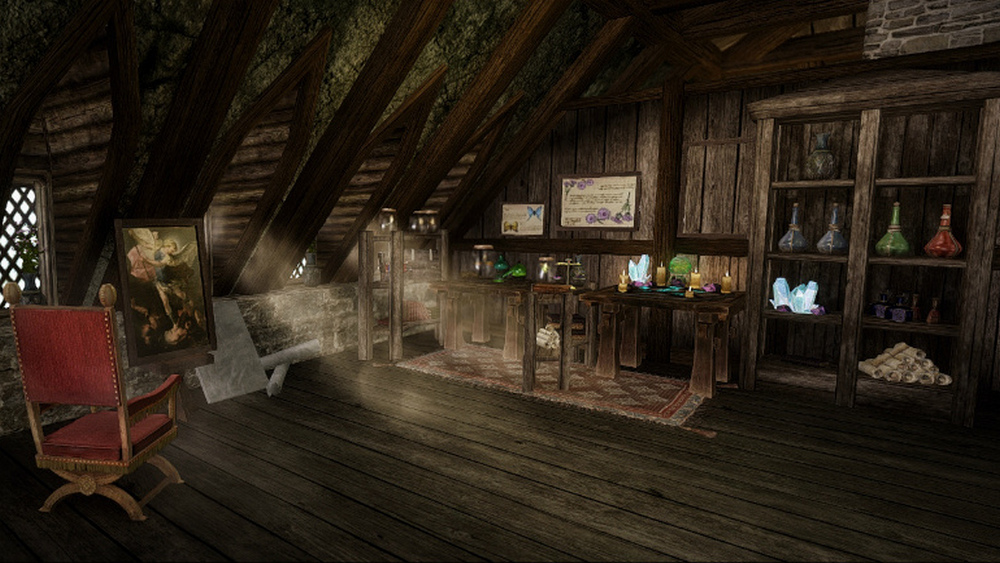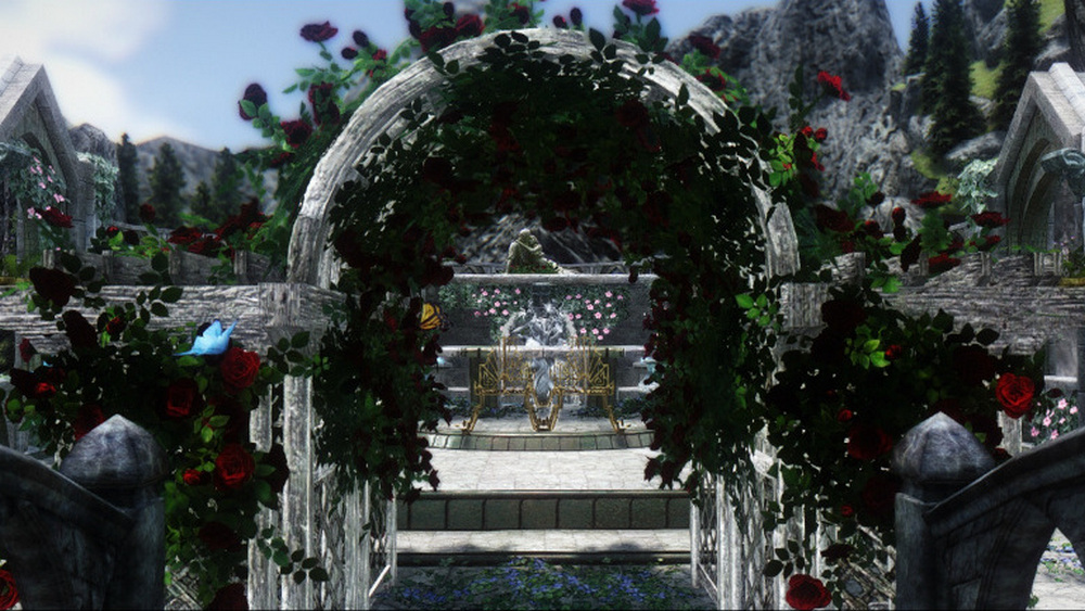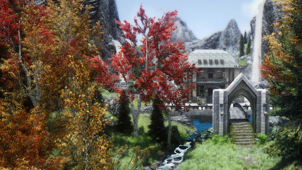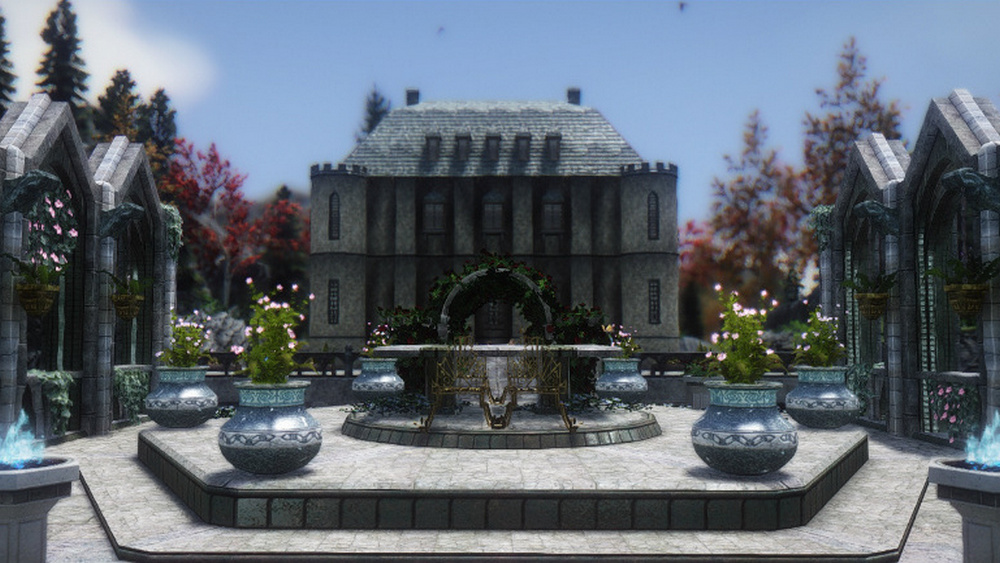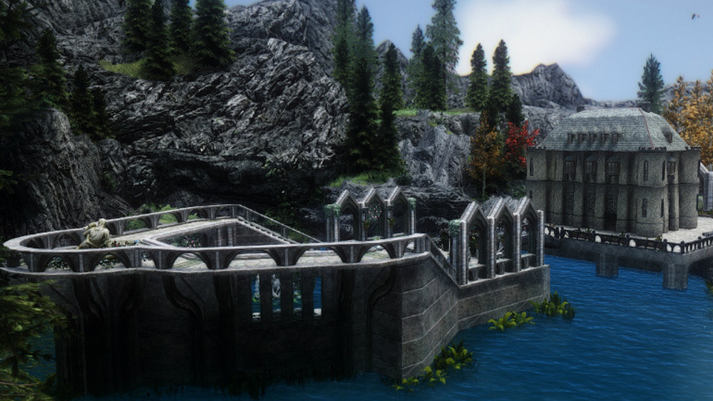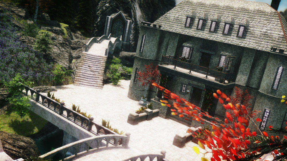 Мод добавляет живописную локацию и волшебную усадьбу для любителей красивых скриншотов. Не могу сказать , что этот дом удобен для постоянного проживания довакина с его семьёй или компаньонами. Но место действительно очень красивое. Попасть в эту локацию можно активировав статуэтку белого ворона не далеко от входа в Драконий Предел в городе Вайтран. Точно так же вы сможете и покинуть локацию активировав такую же статуэтку в самой локации.